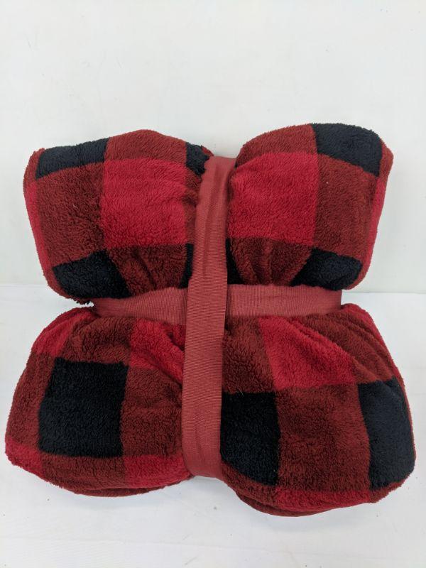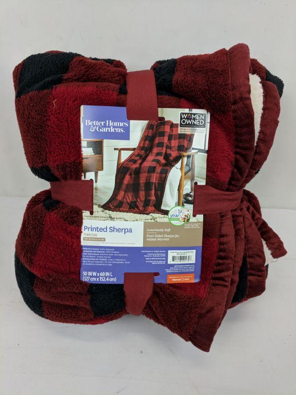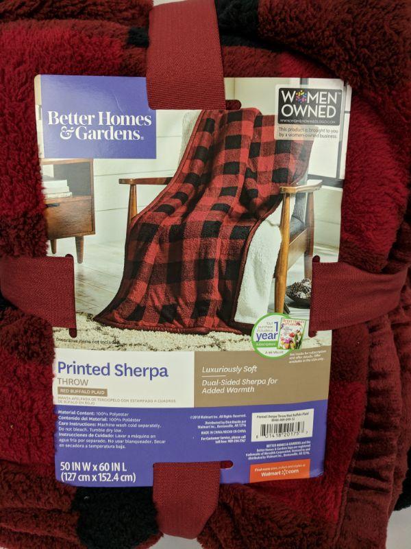 Printed Sherpa Throw, Red Buffalo Plaid, 50 W x 60 L in. - New