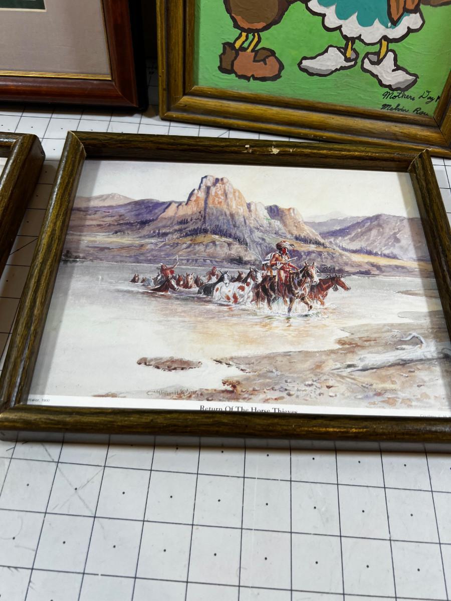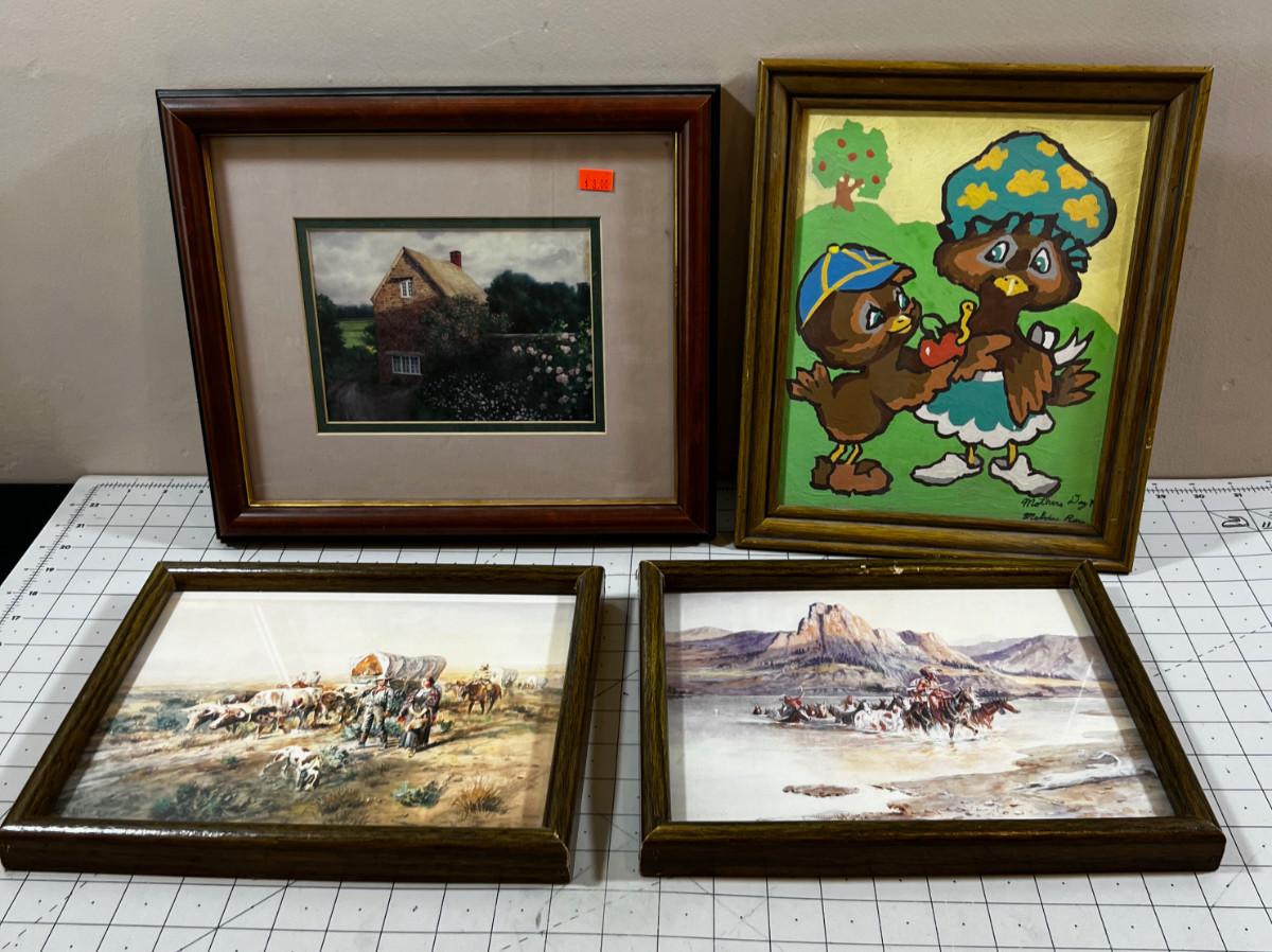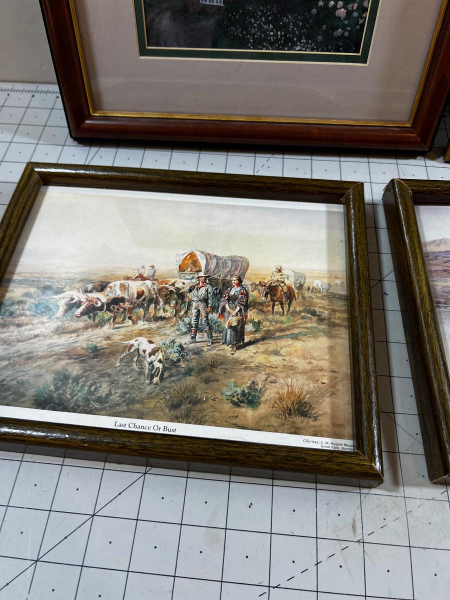 Prints Framed (4) Cottages & Cowboy & Paint by Number.