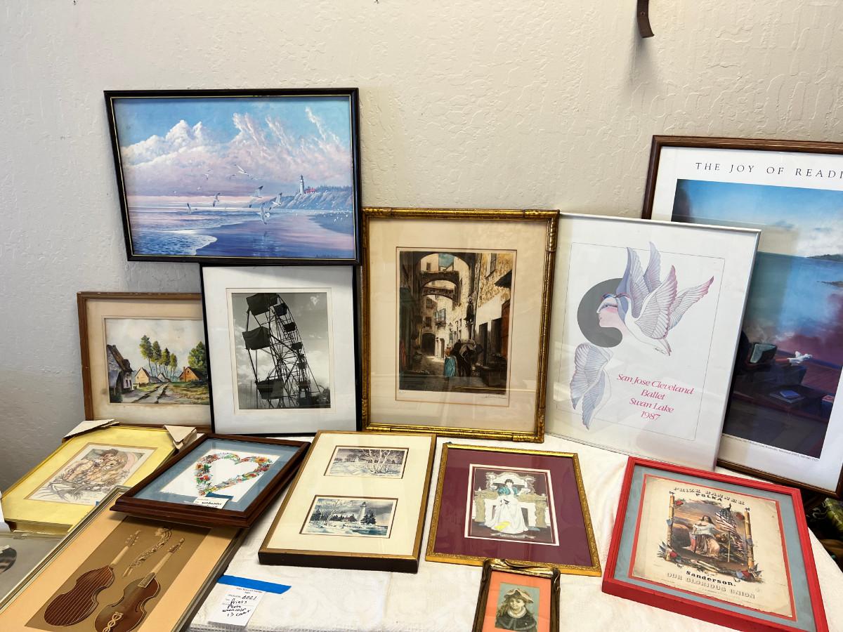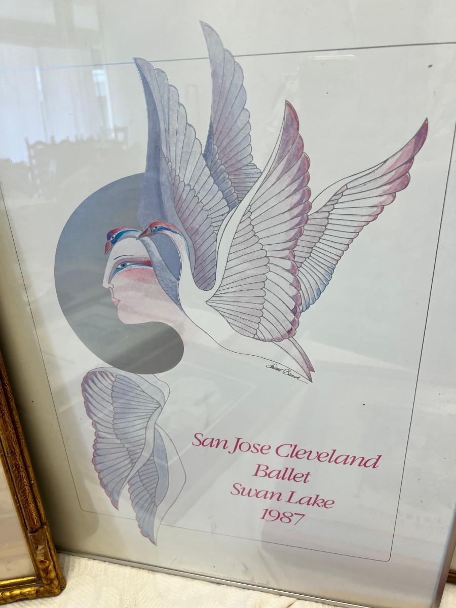 Laurel Birch San Jose Ballet framed poster. Bruge Belgium, numbered street scene, Kincaid postcards, Black and white photograph of a Ferris wheel. Large joy of reading poster. No shipping