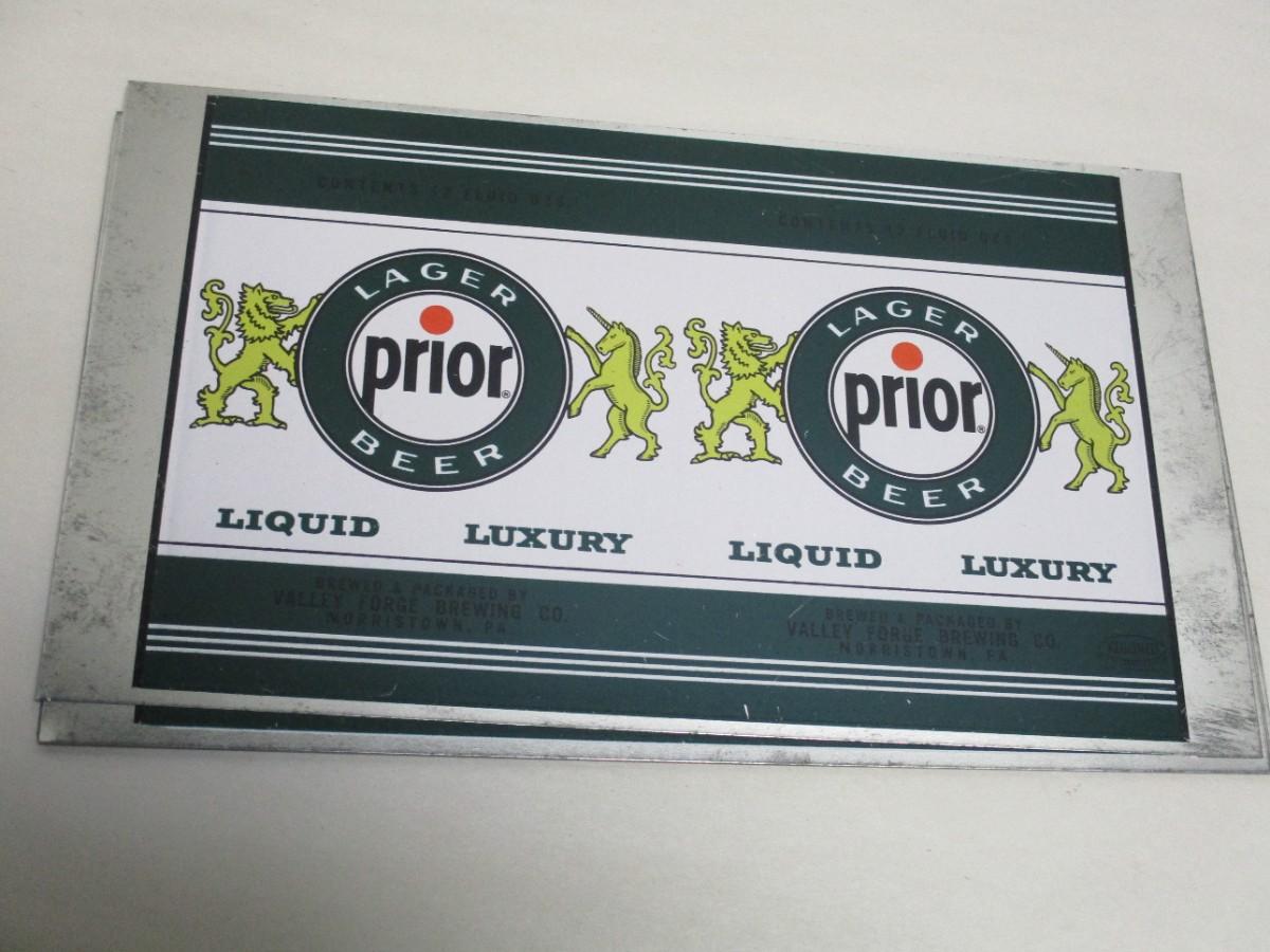 Vintage Proof Labels-  Prior Lager Beer Valley Forge Brewing Norristown PA Metal Labels