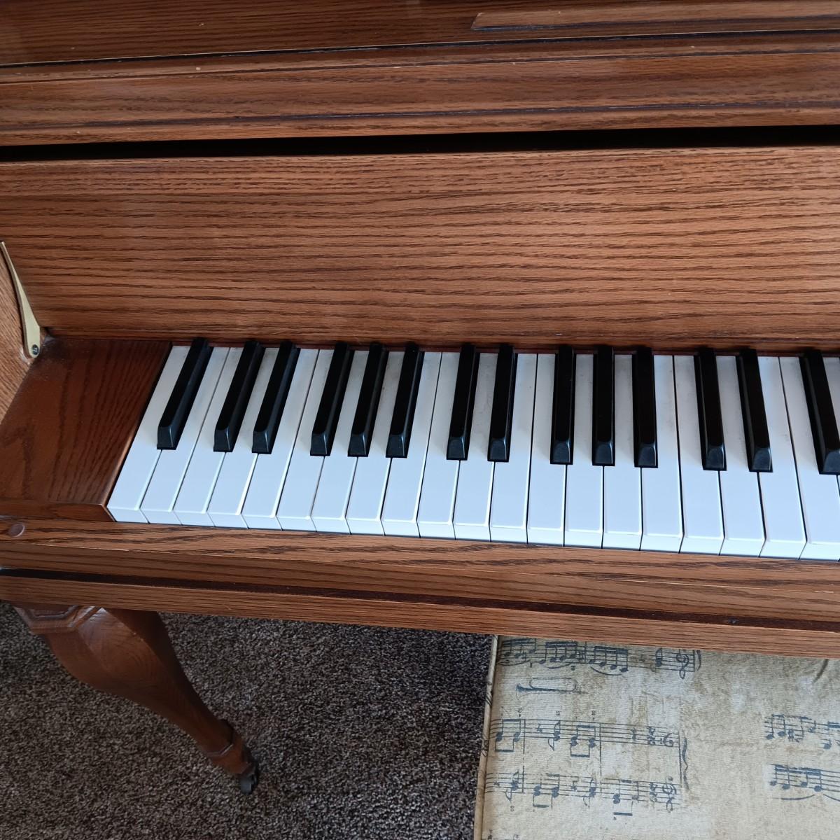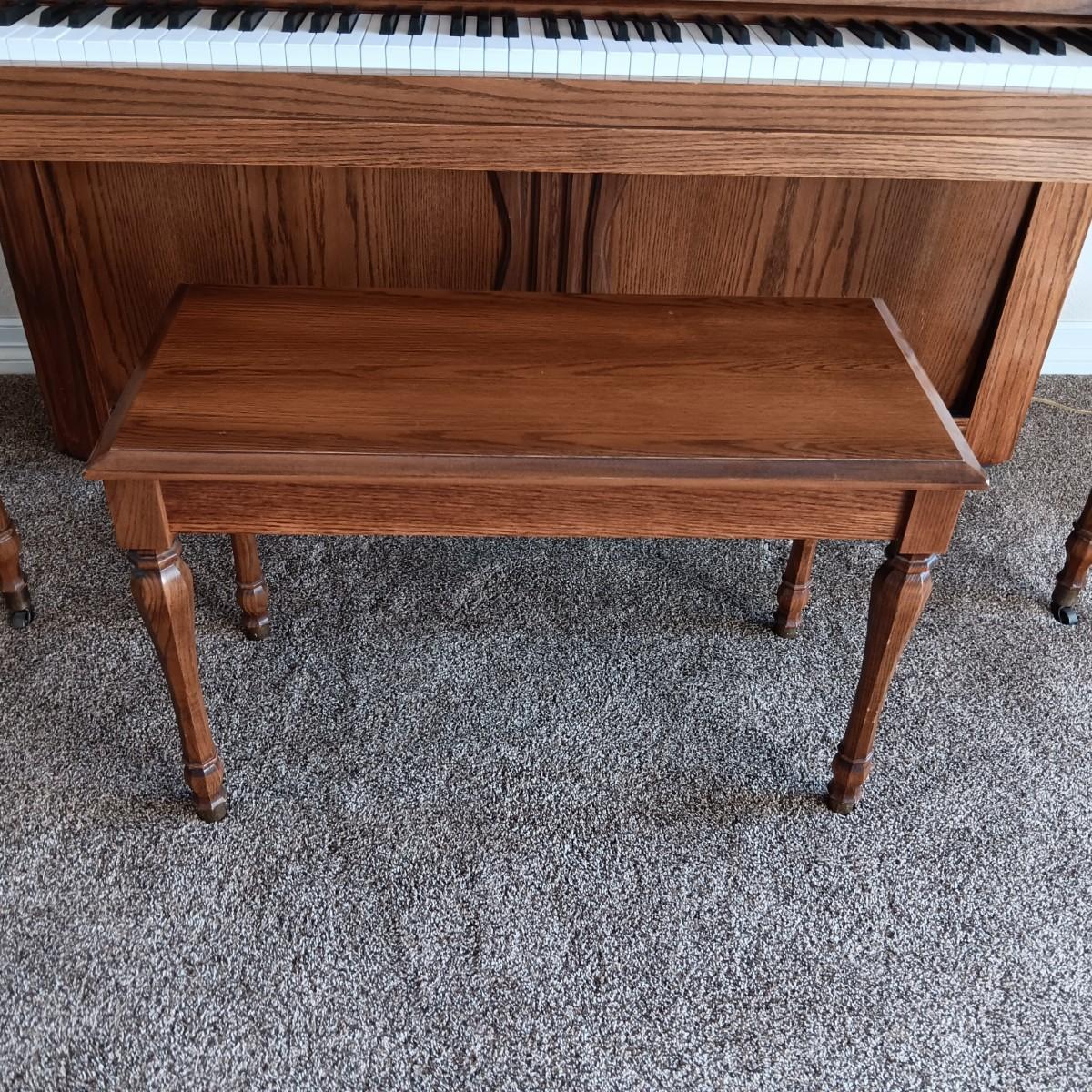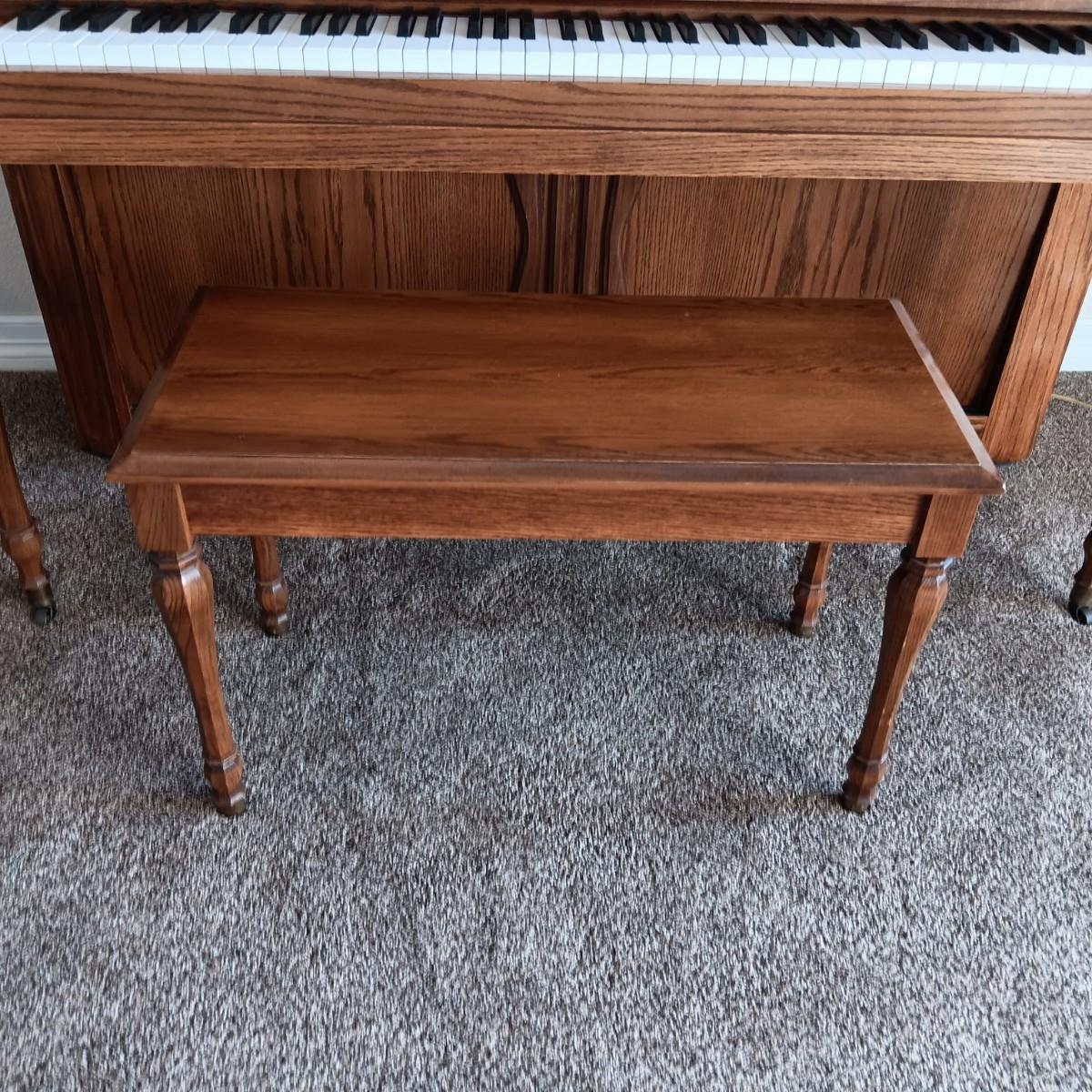 PRISTINE KAWAI PIANO W/ BENCH, SHEET MUSIC AND LAMP