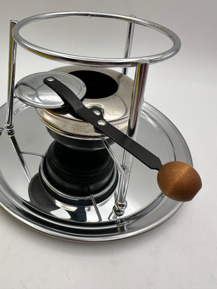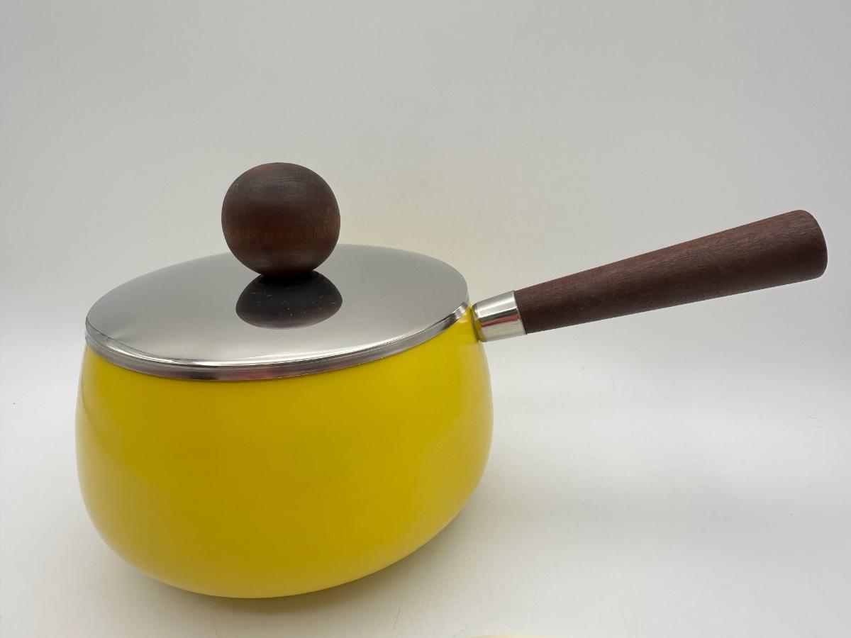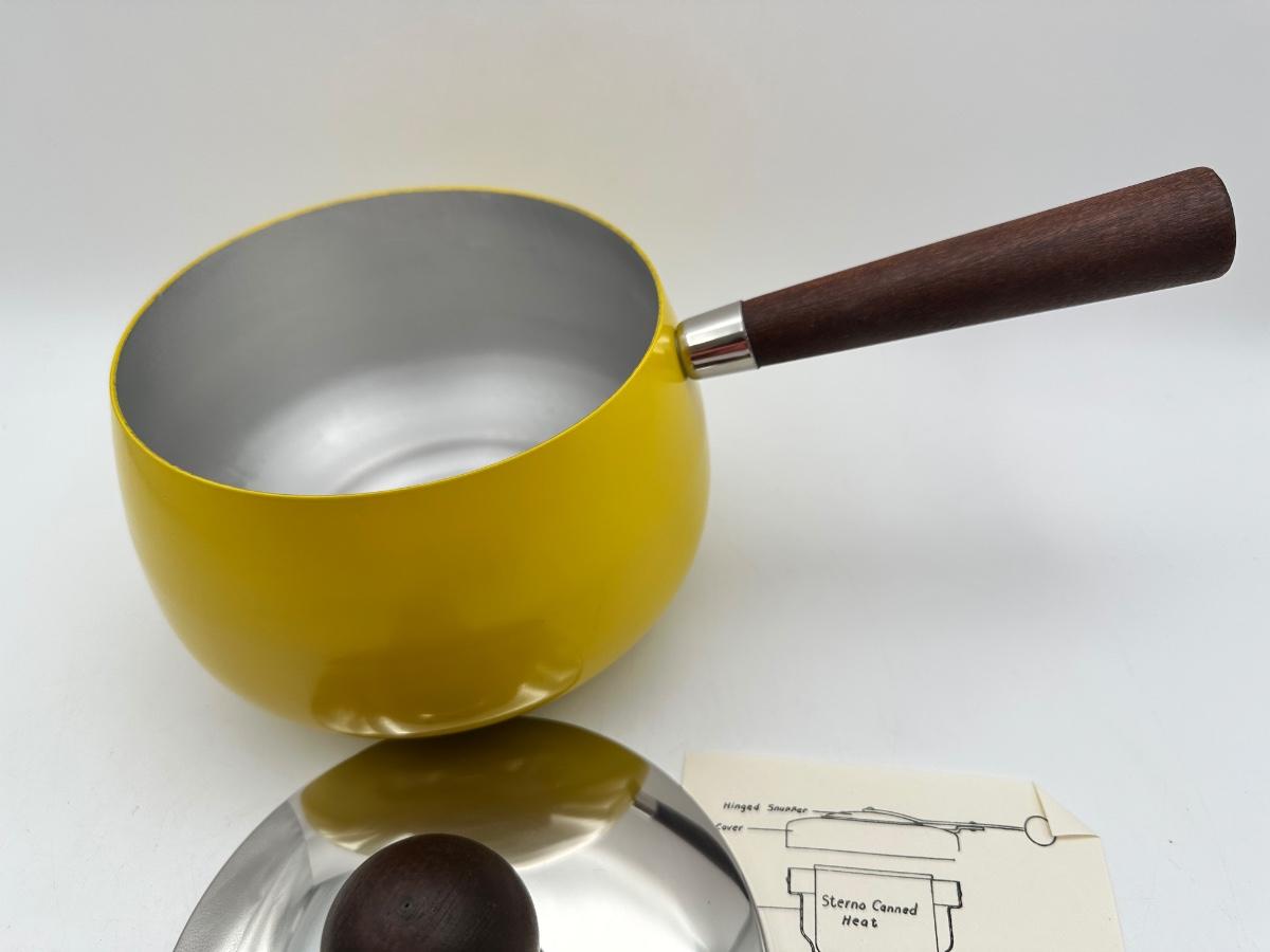 Pristine Vintage Fondue Pot in Canary Yellow, Wood Handles