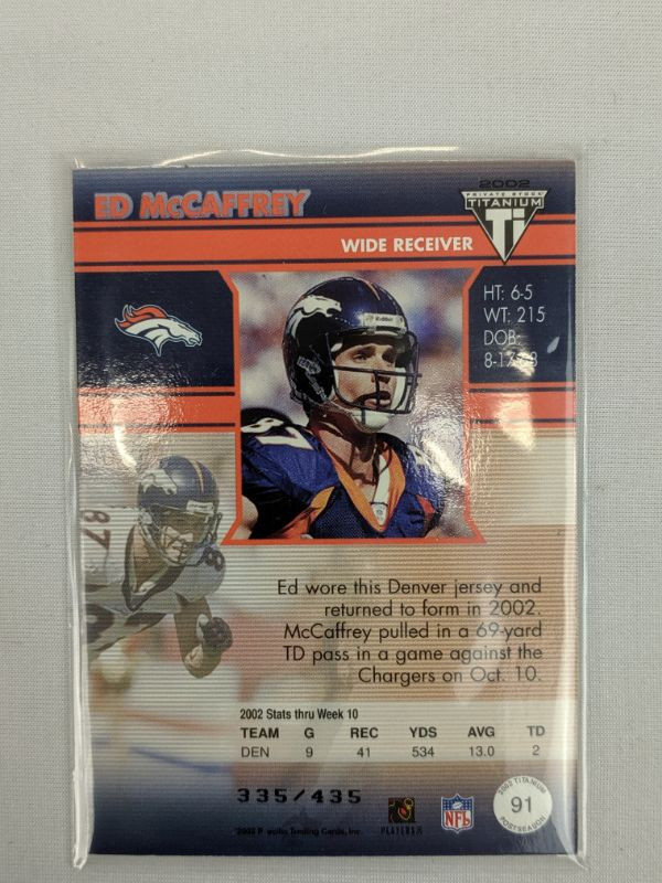 Private Stock Titanium 2002 Ed McCaffrey Football Card With Memorabilia