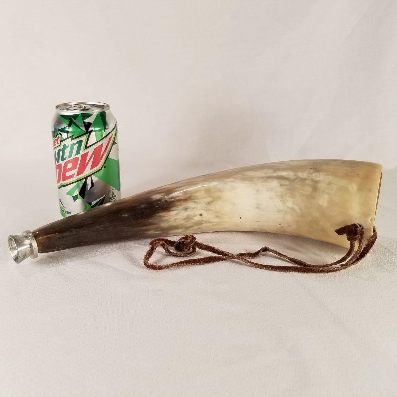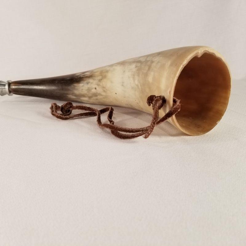 Bull Horn or Shofar Horn. This real bull's horn is 12-inches long and in good condition for a bull’s horn. Stainless mouthpiece - appears to have been blown very little. Quite a unique item - where you gonna find another.