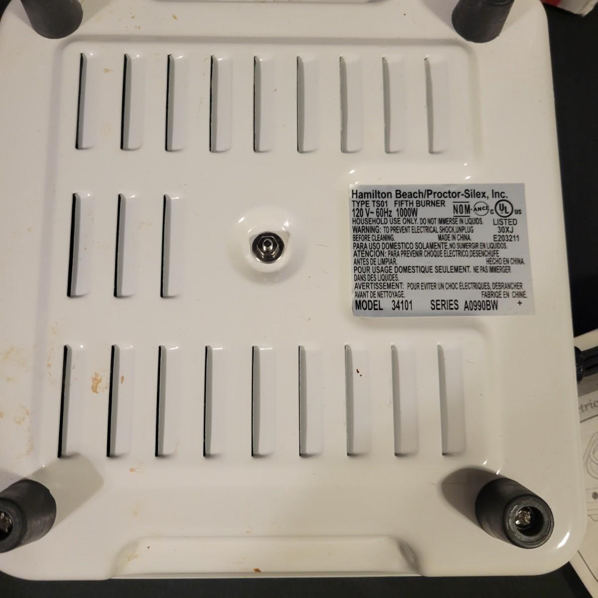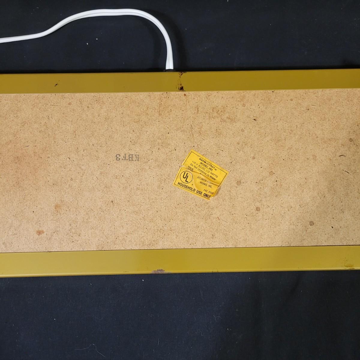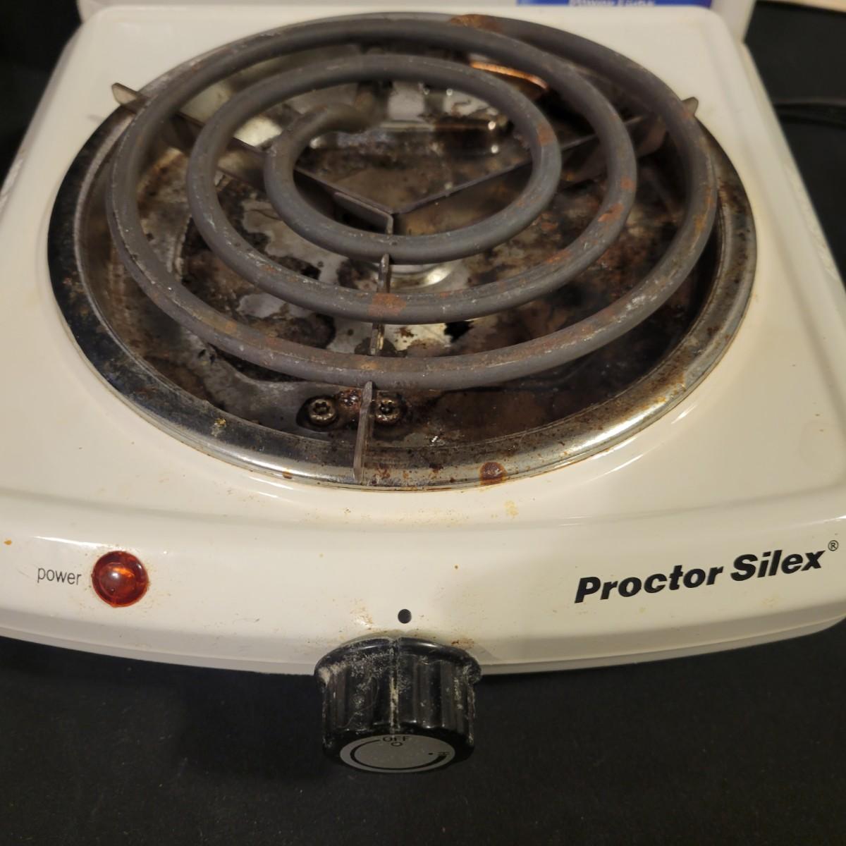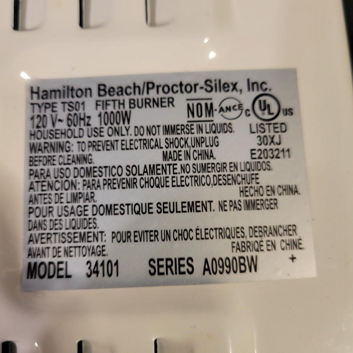 A Proctor Silex fifth burner and two vintage warming trays that all powered on when plugged in. The fifth burner has adjustable heat settings and its original packaging. Both warming trays carry a constant temp. The largest tray measures approximately 25.5" x 7.5" x 1.5"H. Shipping available