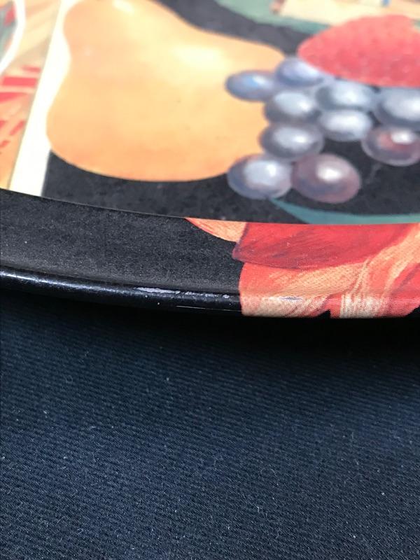 Overall in good condition. There’s one small scratch near the 6 o’clock position. See pictures. Tray measures approximately 13.5” in diameter