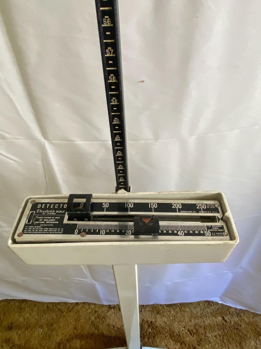 Super old classic Detecto doctor’s scale from genuine old doctor’s office. Up to 300 lb, plus adjustable bar for height as well.