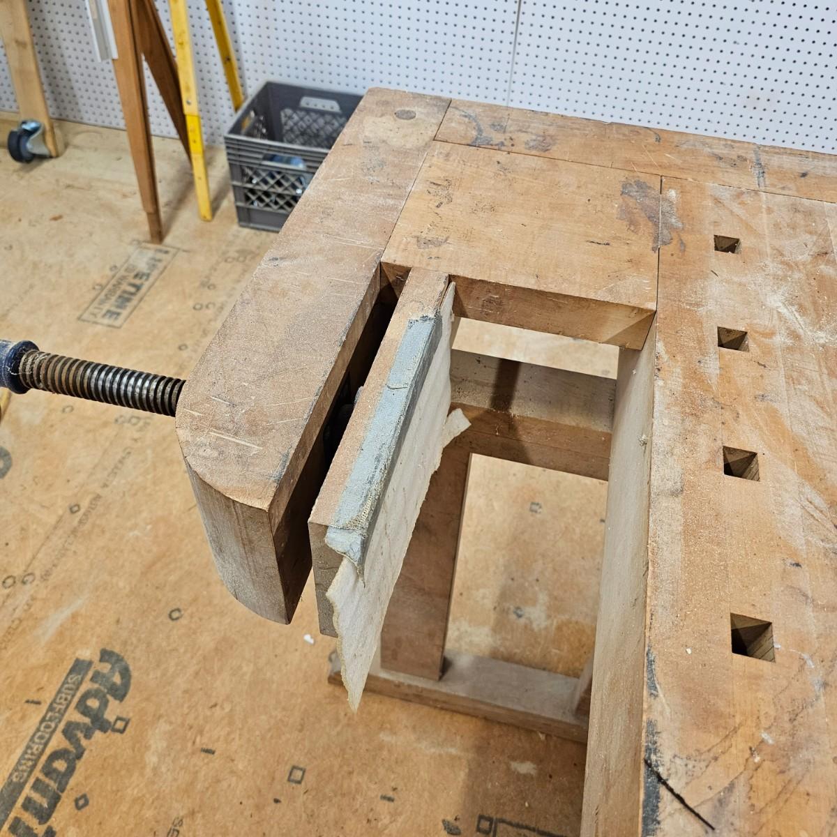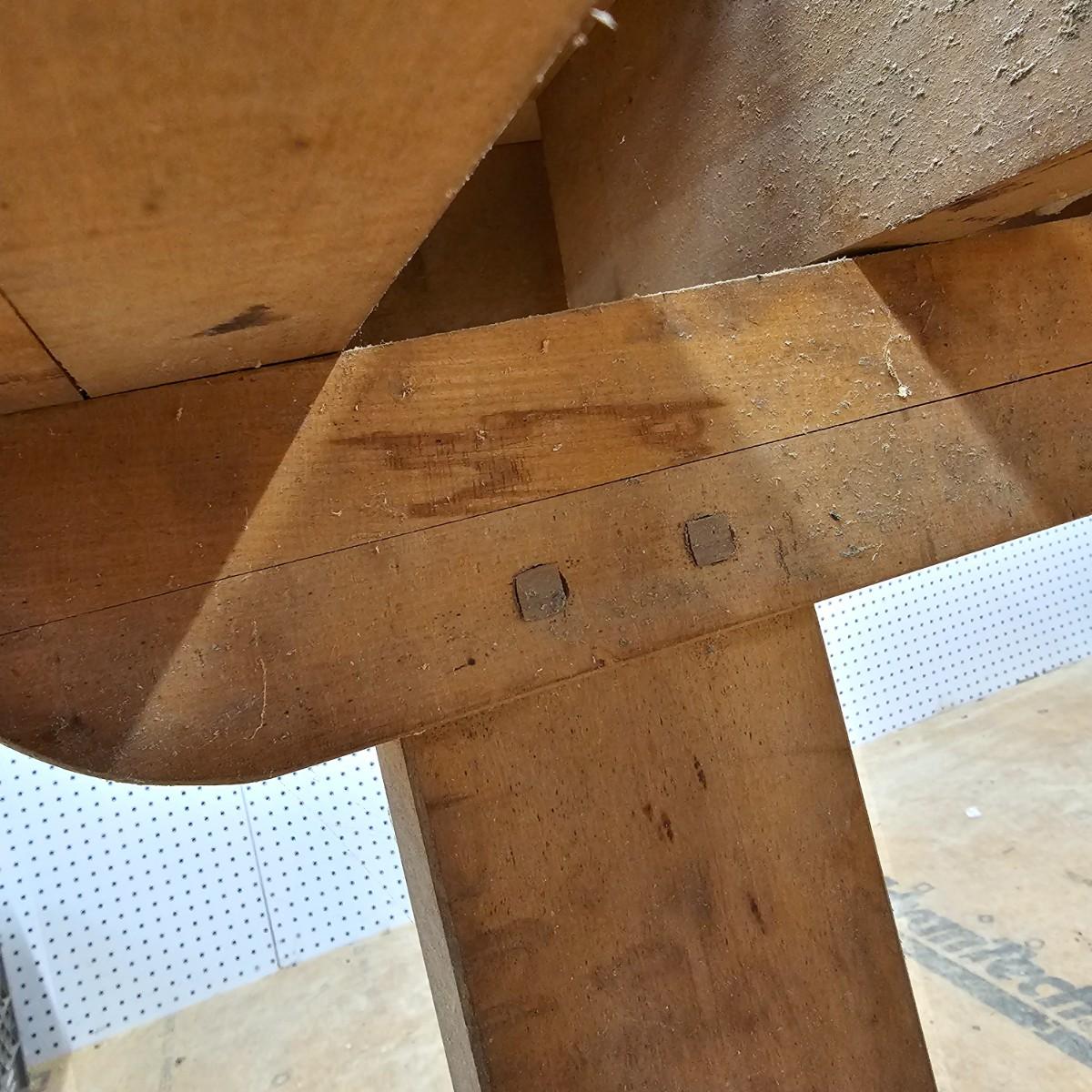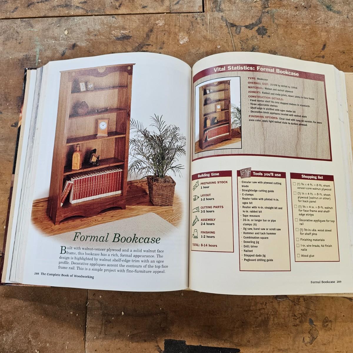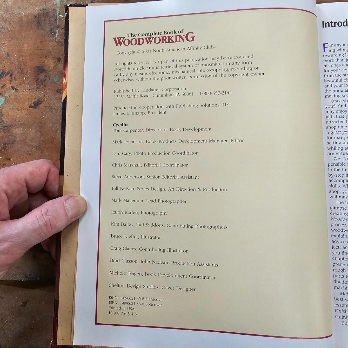 A solid professional style woodworking bench. Unit is solid wood, measures 108" x 39" x 36"H. Constructed with screws, bolts, mortise and tenon and dovetail joints. Also has two wood vises, one on each end and a recessed tray at the back to catch sawdust and pieces. Dog pin slots are situated along one side for holding work. Top is 6" thick at edges. Also includes a copy of 'The Complete Book of Woodworking', which has tips and projects with plans to build. See photos for details. This piece is very solid and very heavy. Local pickup only. Winning bidder must bring assistance to help move and load this item due to its weight and/or size.