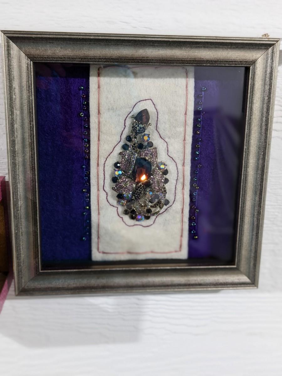 Hand beaded, sewn and embroidered on felted wool, no glue.