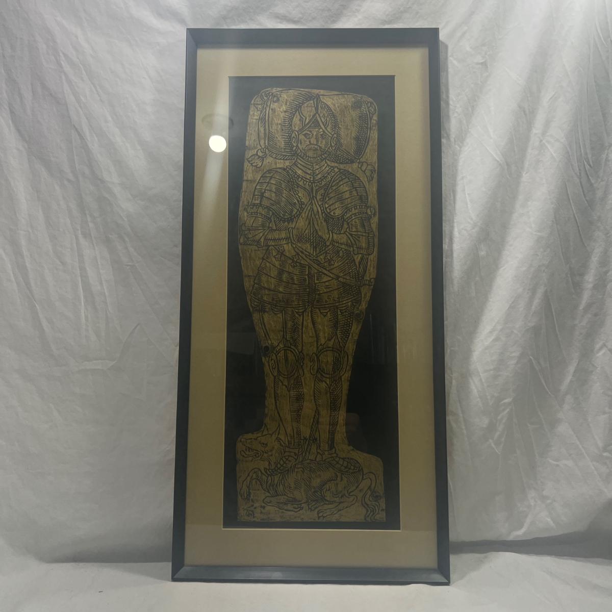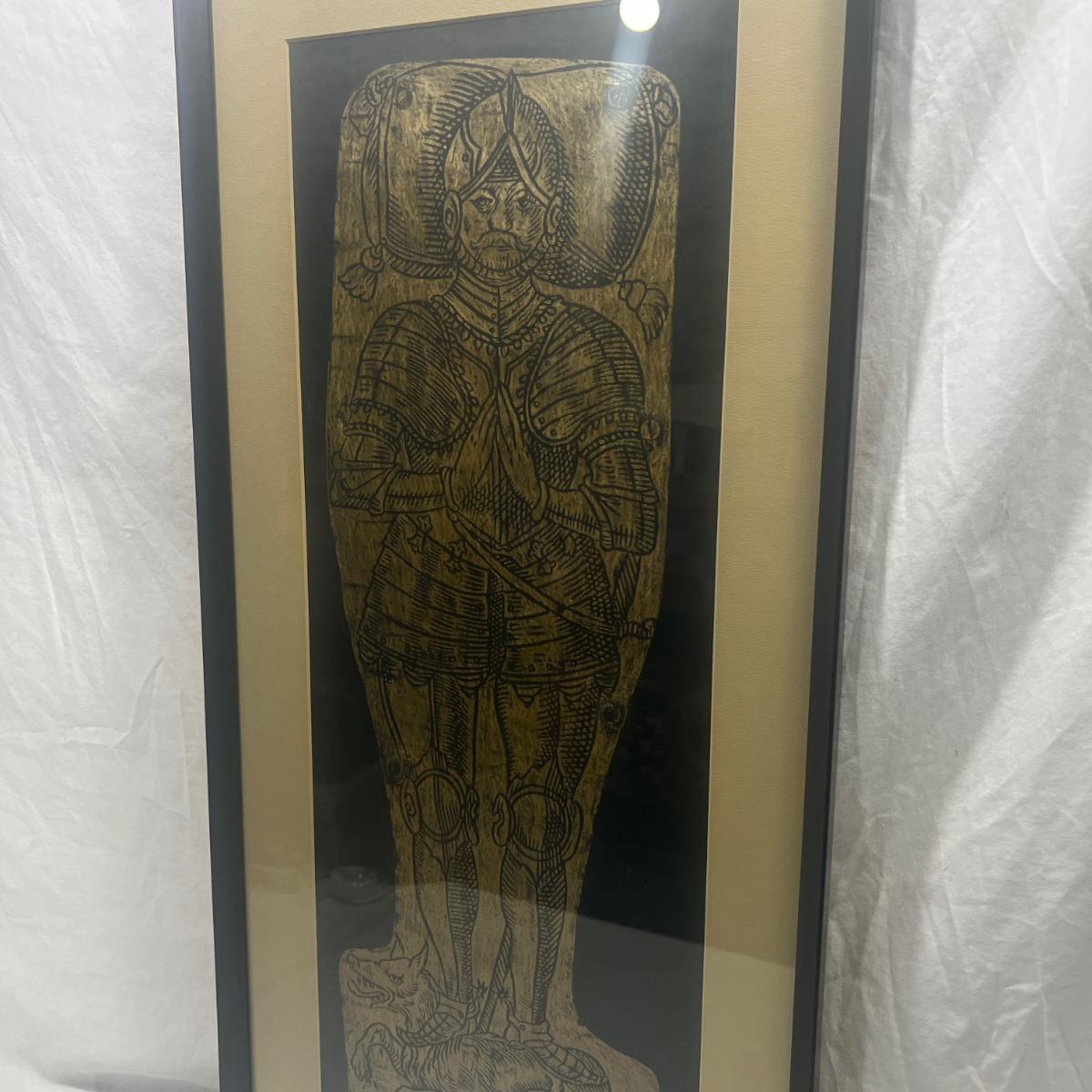 A brass rubbing of Sir Roger Bellingham of Kendal, Westmorland, 13 3/4" 29"