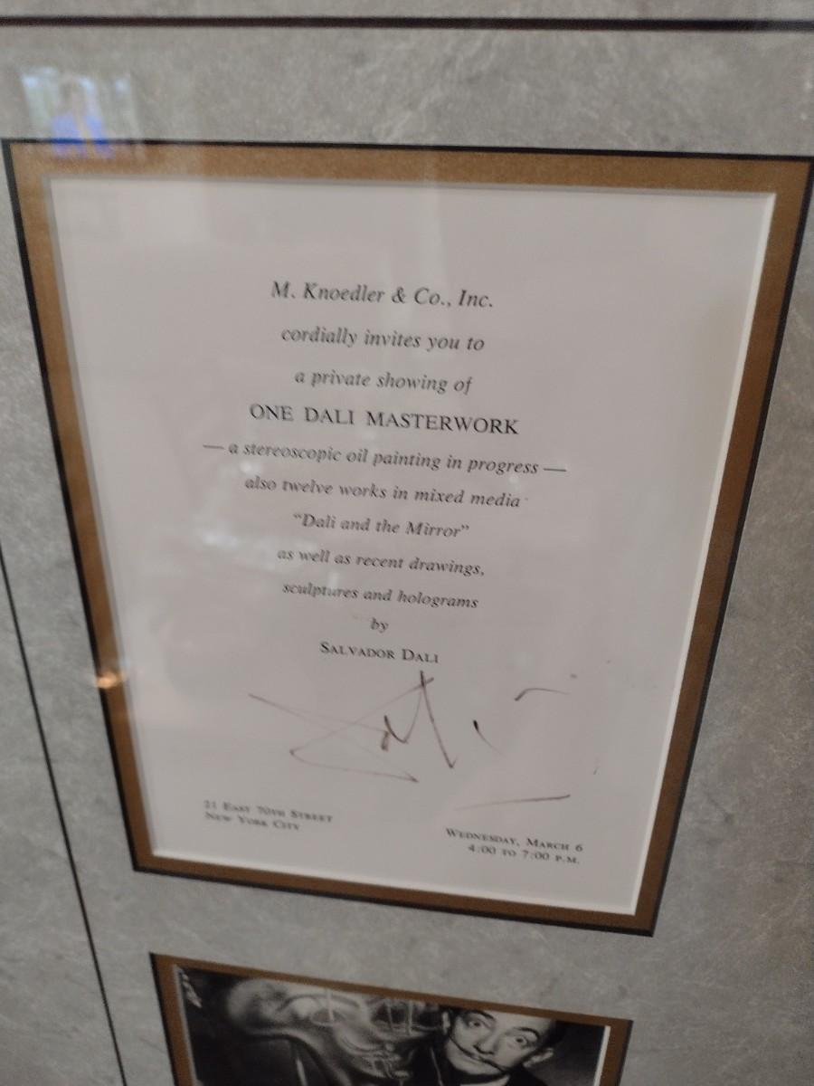Professionally Framed Hand Signed M. Knoedler and Co. Invitation by Salvador Dali with C.O.A.