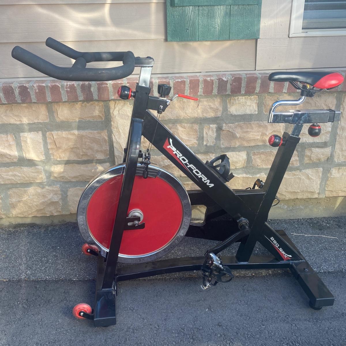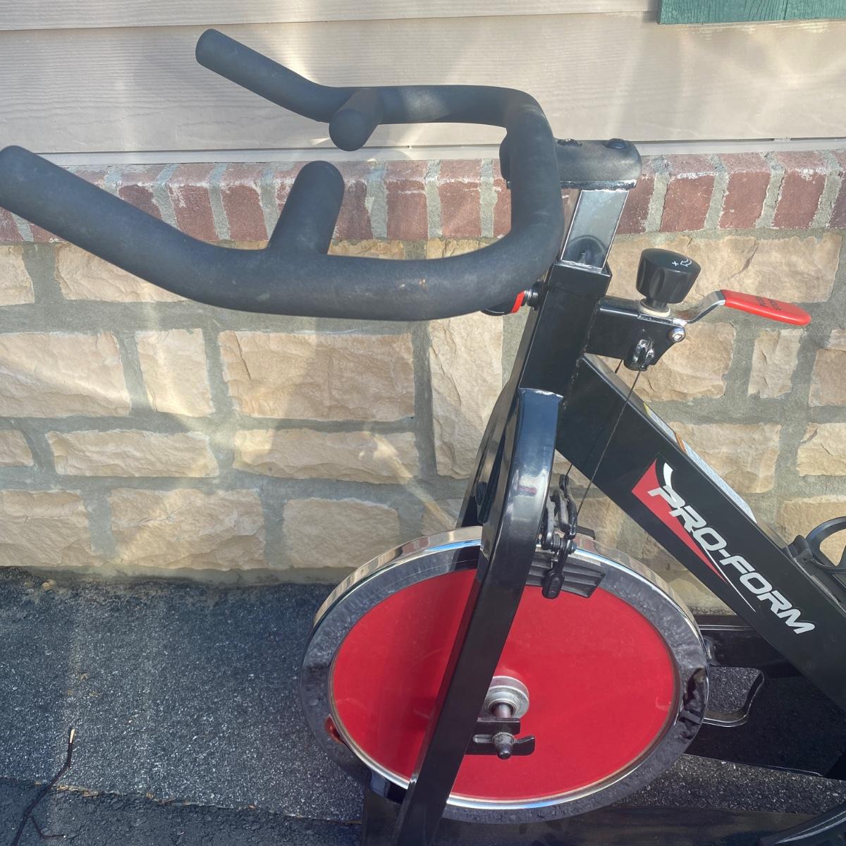 Like new stationary bike by ProForm. Adjustable seat and tension. Includes straps on pedals. Great condition. Measures approximately 44” long x 20” wide x 41” high. No shipping.