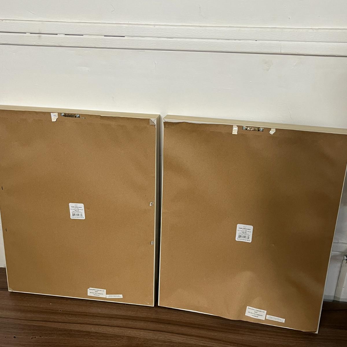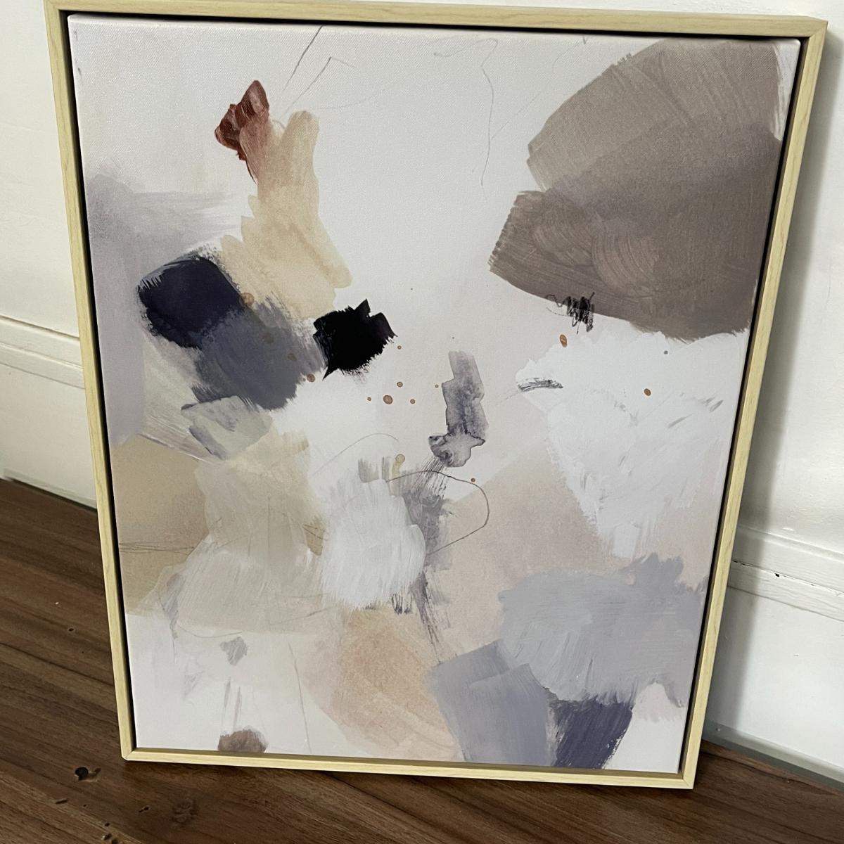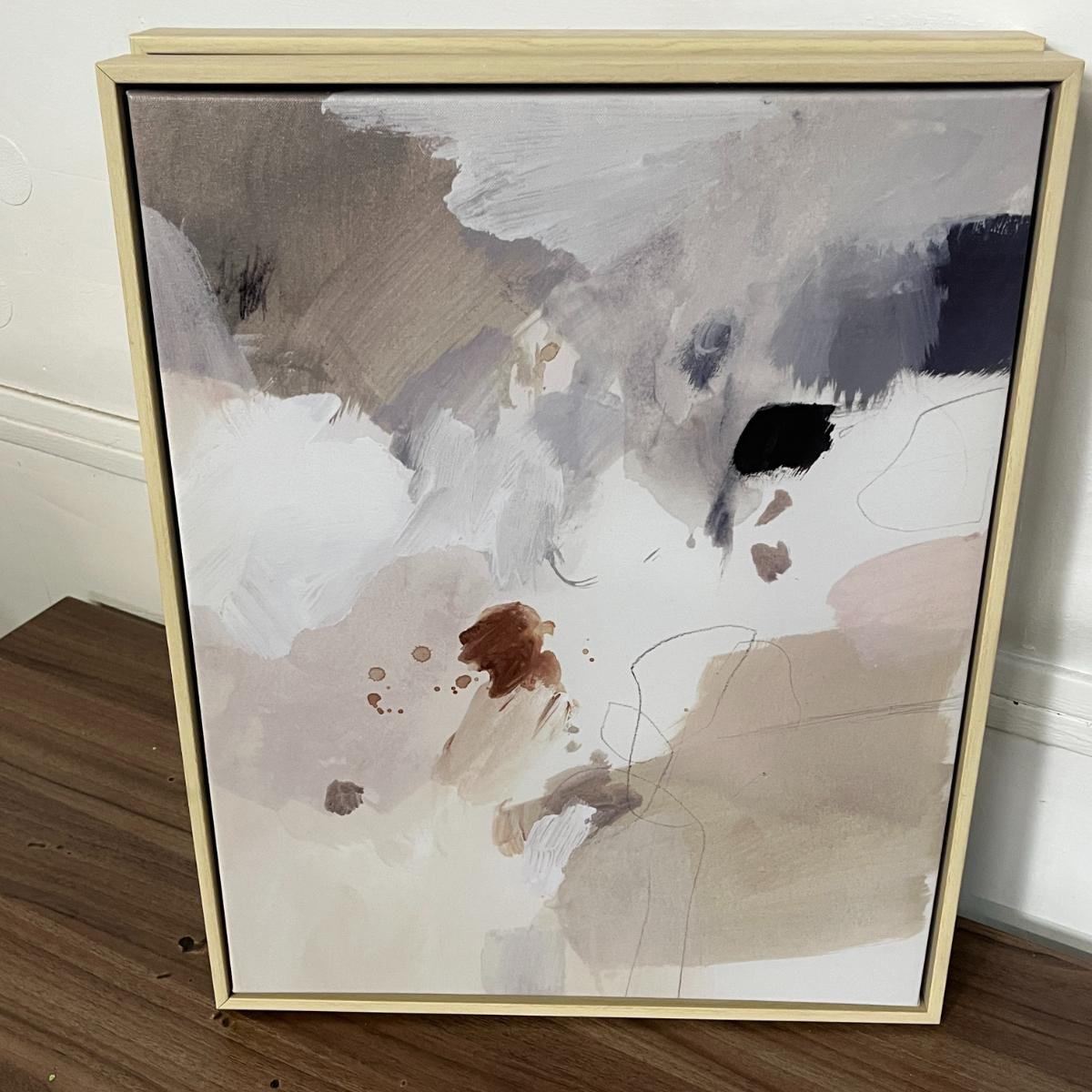 16x20, 2 framed canvases, neutral abstract tones, textured layered brushstrokes.