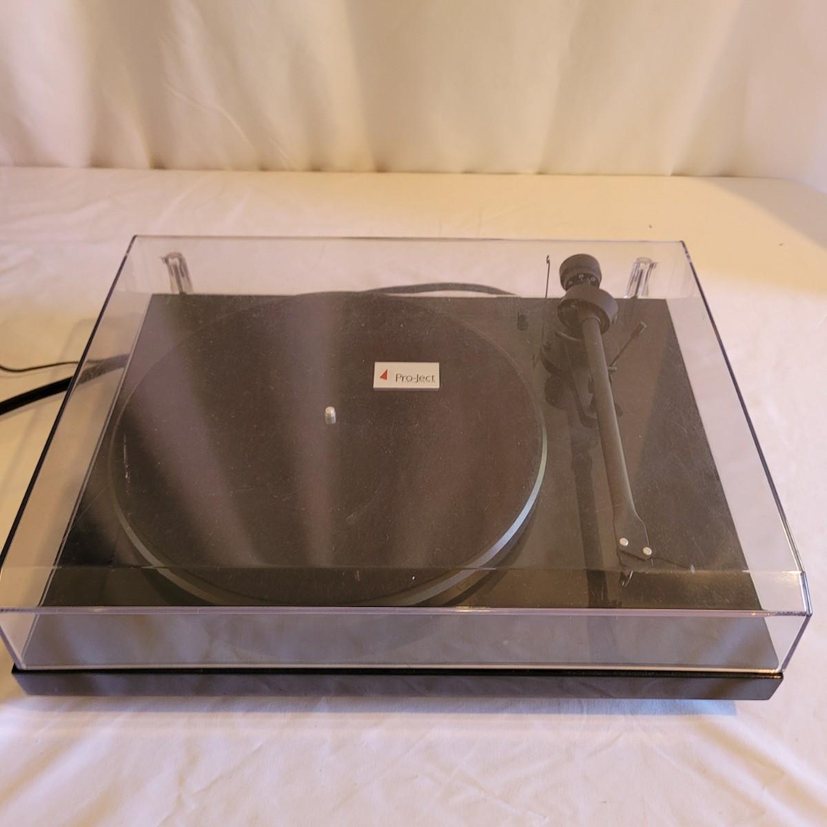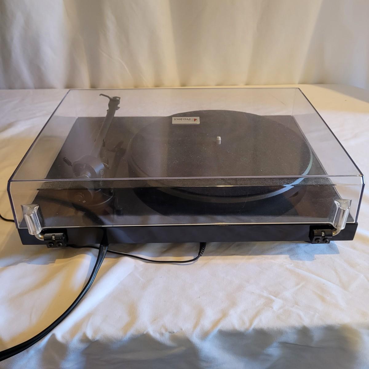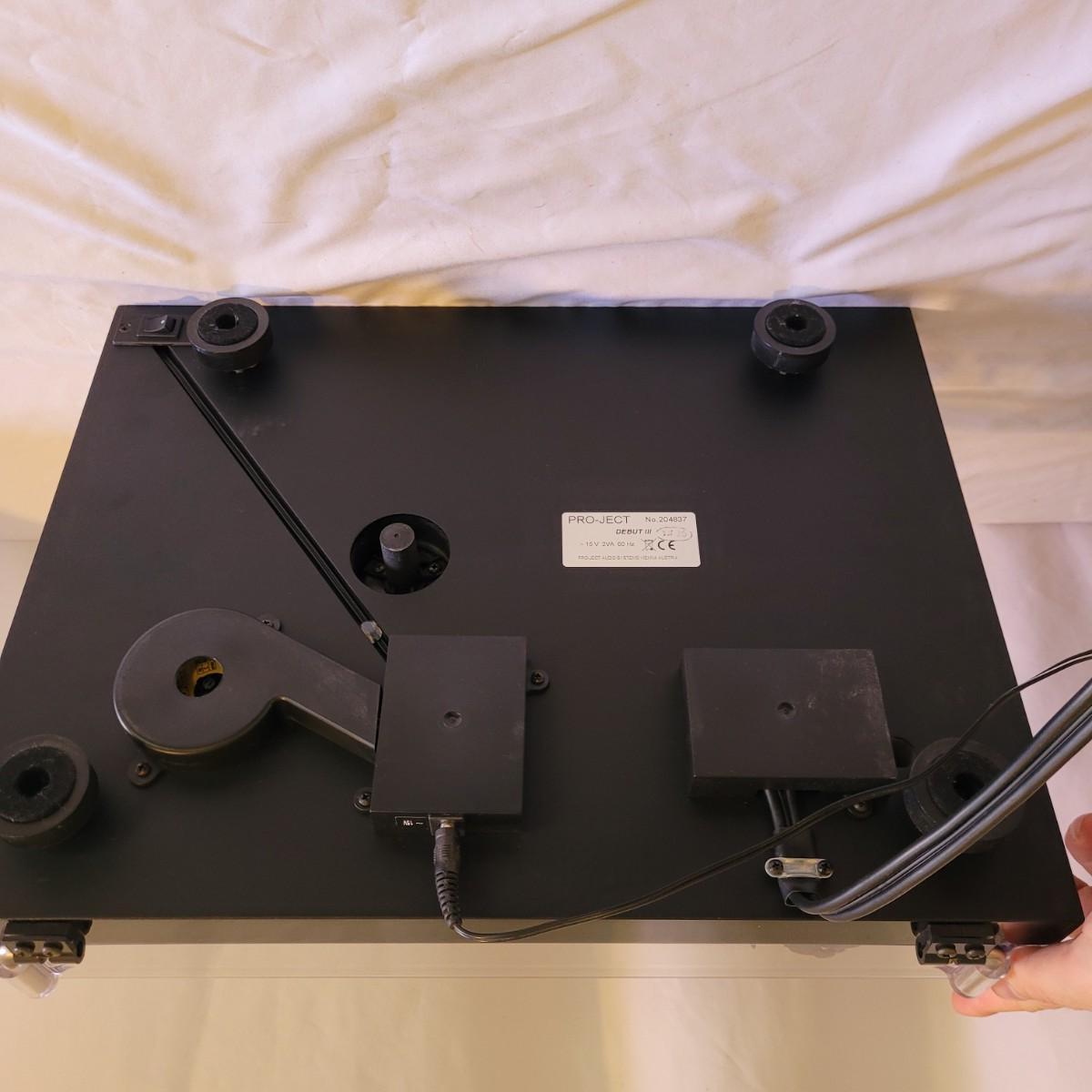 This auction is for a Pro-Ject brand "Debut 3" turntable or record player. Speed settings include 33/45 + 78rpm (electronic speed change). Precision belt drive with motor control. Dustcover & felt mat included. Handmade in Europe. Powers on when plugged in. Item measures 16" x 13" x 5"H.