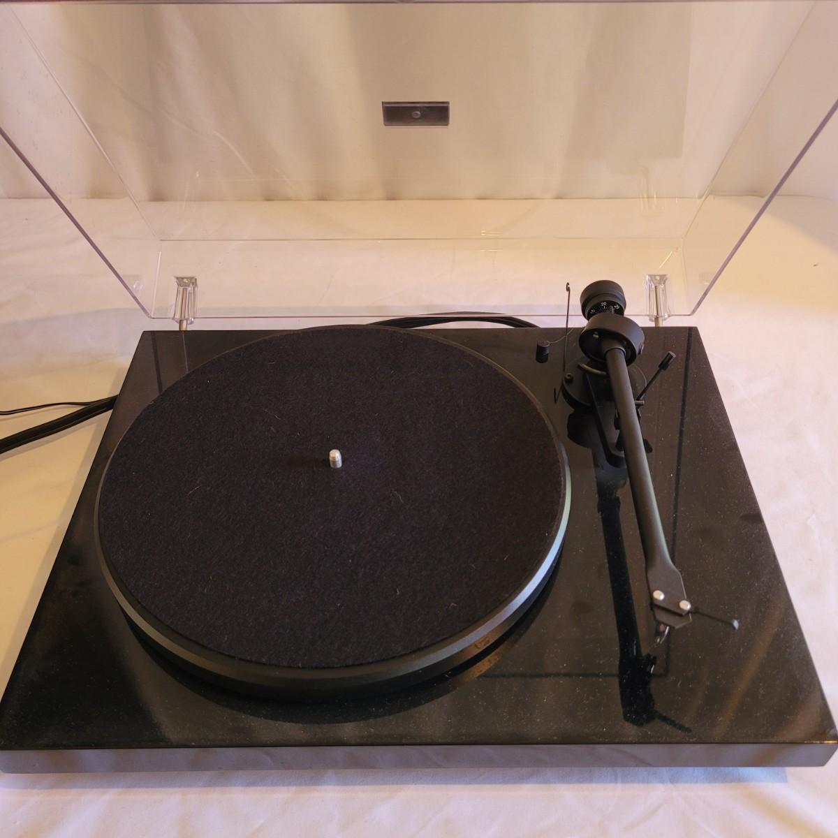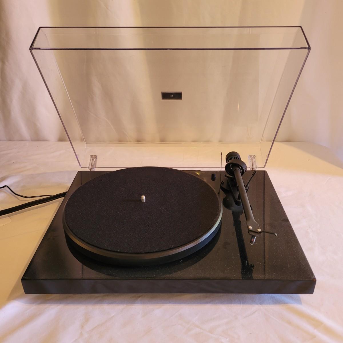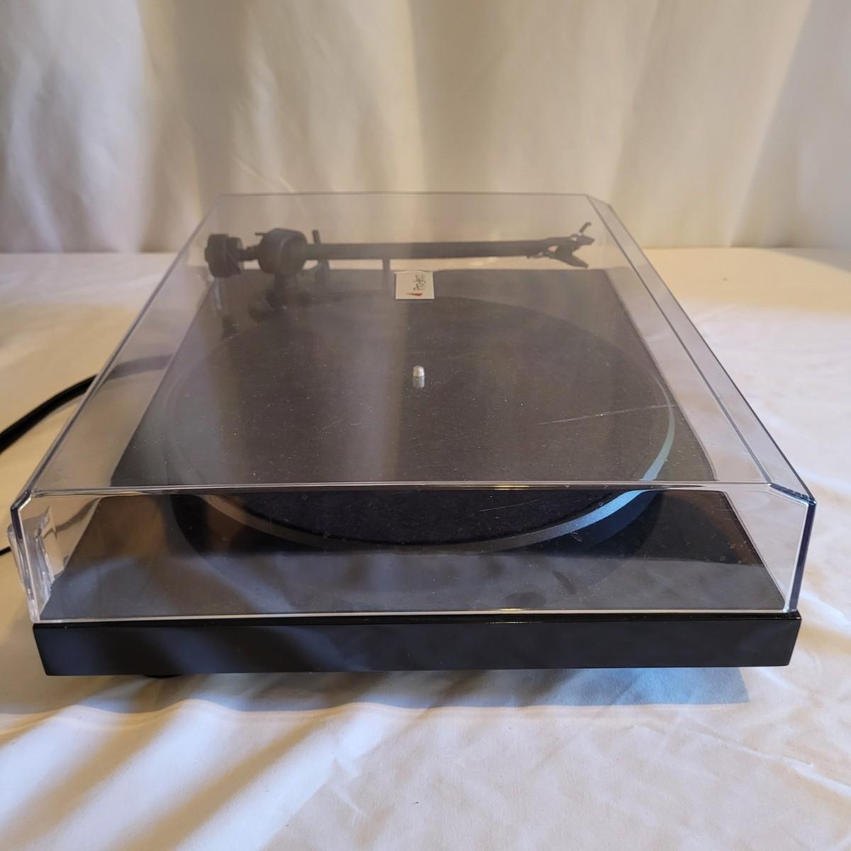 This auction is for a Pro-Ject brand "Debut 3" turntable or record player. Speed settings include 33/45 + 78rpm (electronic speed change). Precision belt drive with motor control. Dustcover & felt mat included. Handmade in Europe. Powers on when plugged in. Item measures 16" x 13" x 5"H.