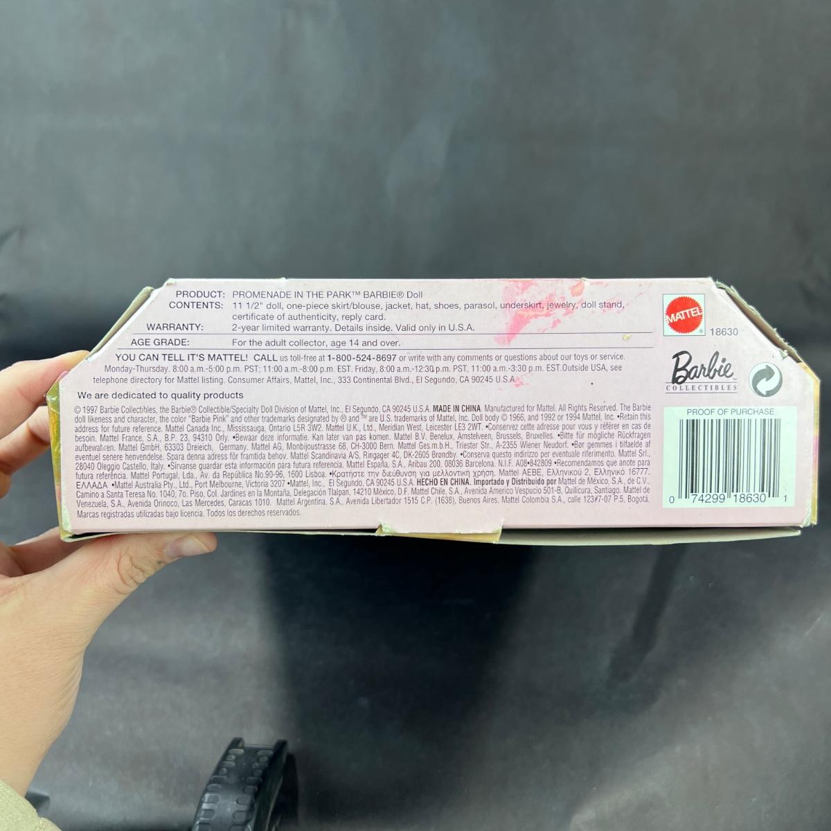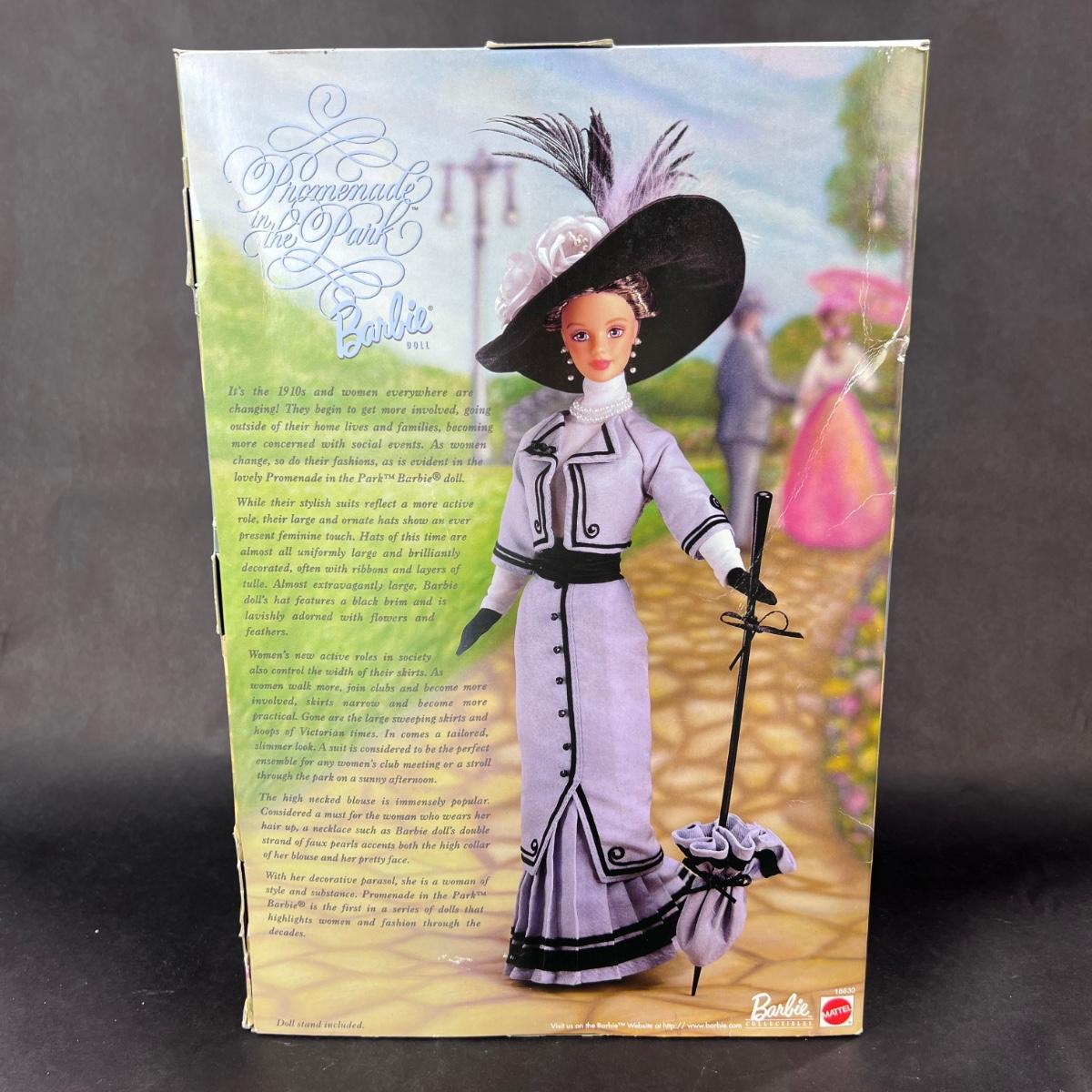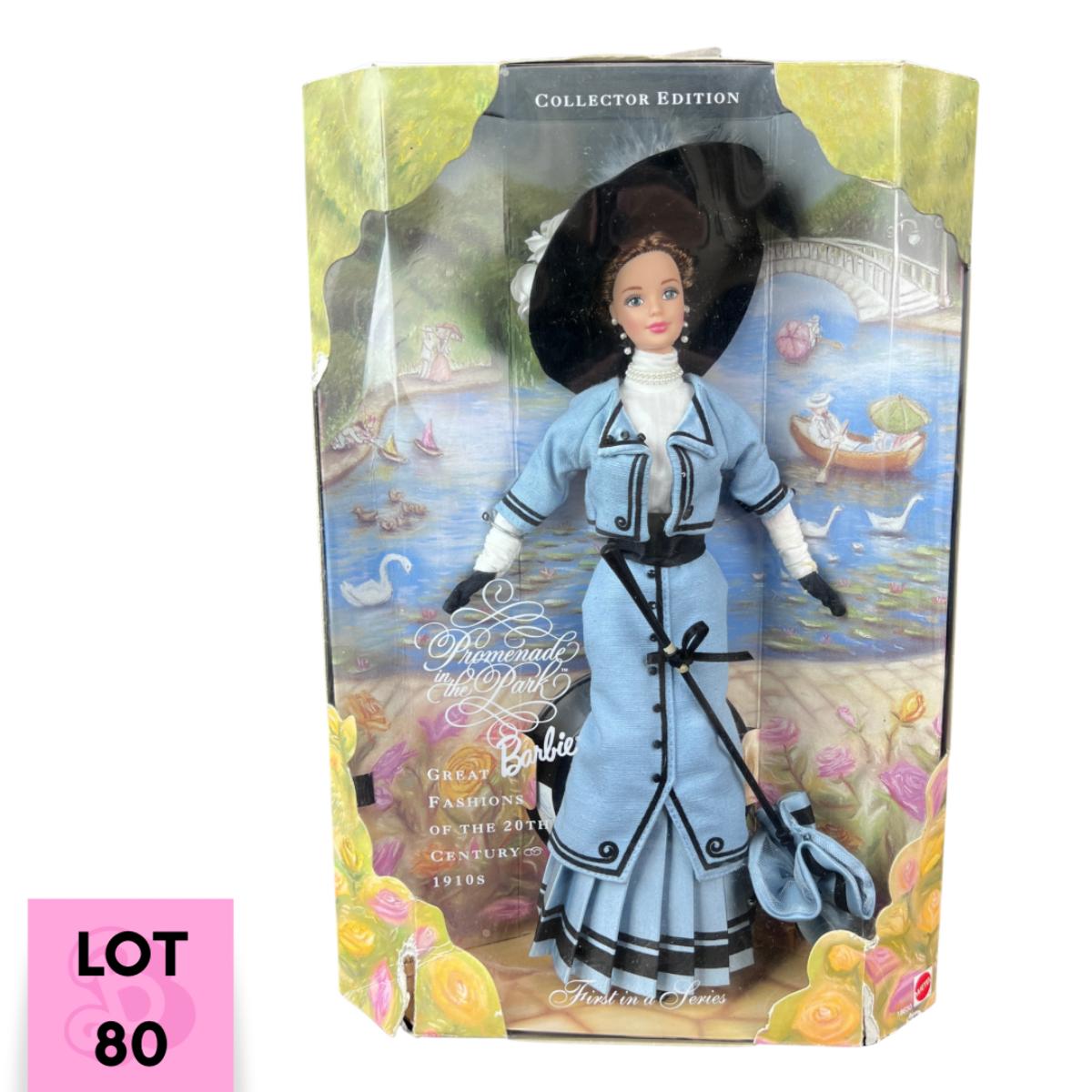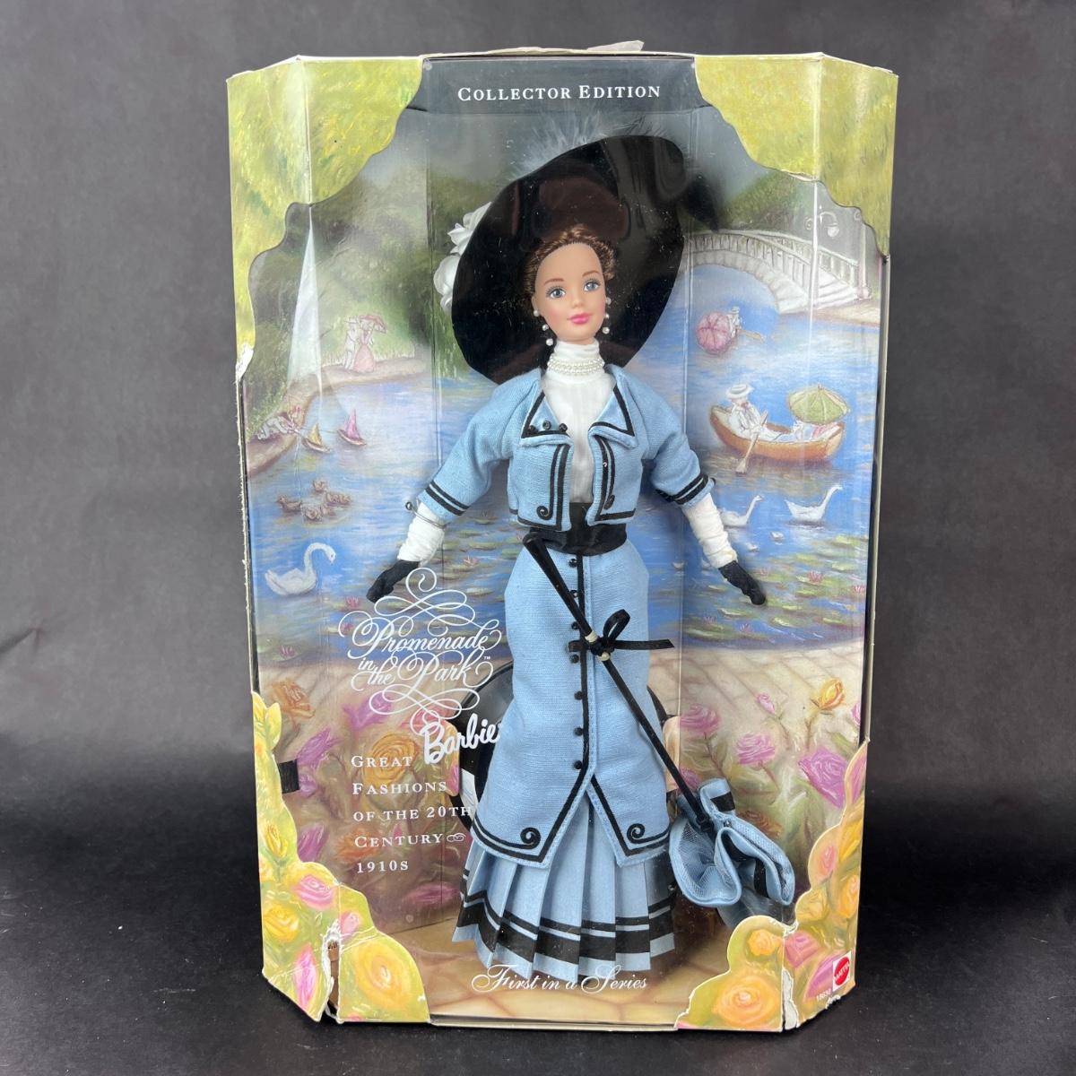This doll would fit right in during a Promenade in the Park. Produced by Mattel in 1997, this doll has a sweet blue dress and a matching parasol. This doll is the first in a series of Great Fashions of the 20th Century. This doll in particular, the 1910s. This doll has not been out of its box. **|** Please see photos for details and condition. ::: Shipping is available on this lot. If you require shipping you must let us know at the close of the auction. We will coordinate with you after the item has been won. Shipping fees will include insurance up to or exceeding the value of all items being mailed. If you have any questions regarding this lot please contact the auctioneer either via this website, by direct email or by phone. PICK UP TIMES and other important information can be found in the TERMS and DESCRIPTION of the auction. Please take a look for pertinent information. Thanks!
