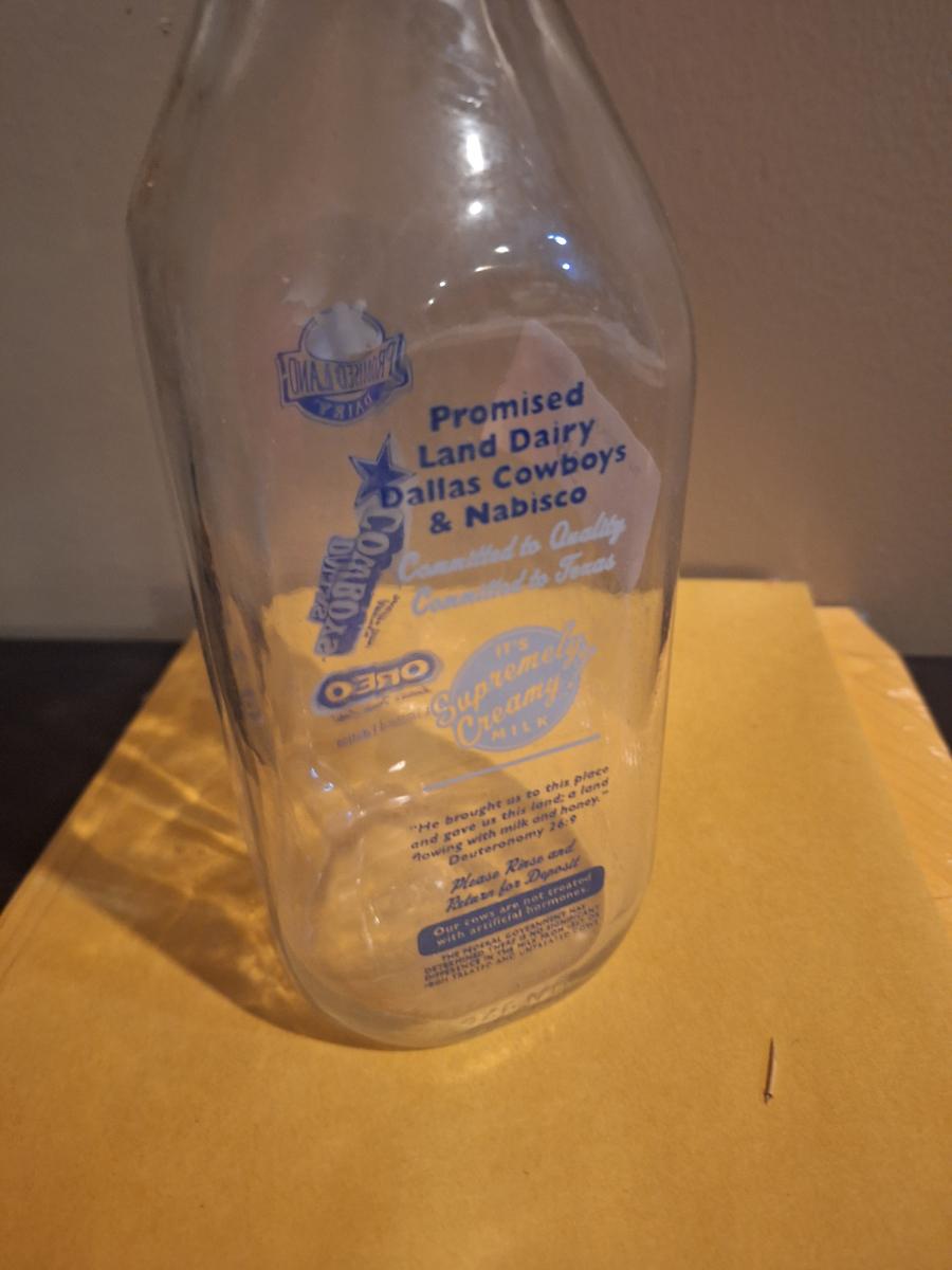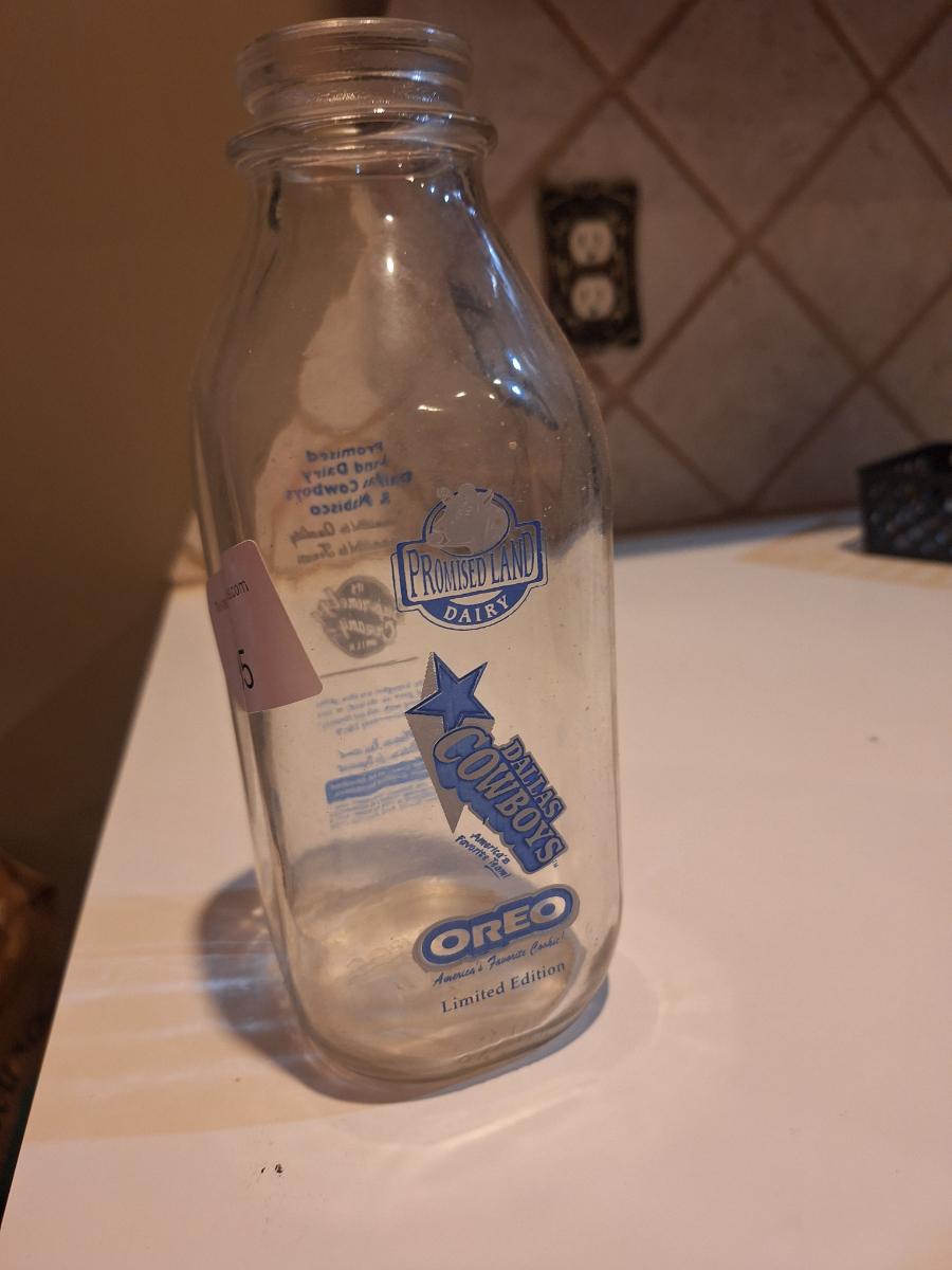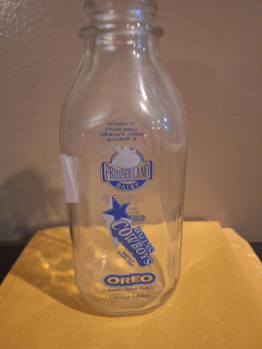 Promised Land Dairy Dallas Cowboys Oreo Limited Edition glass milk bottle