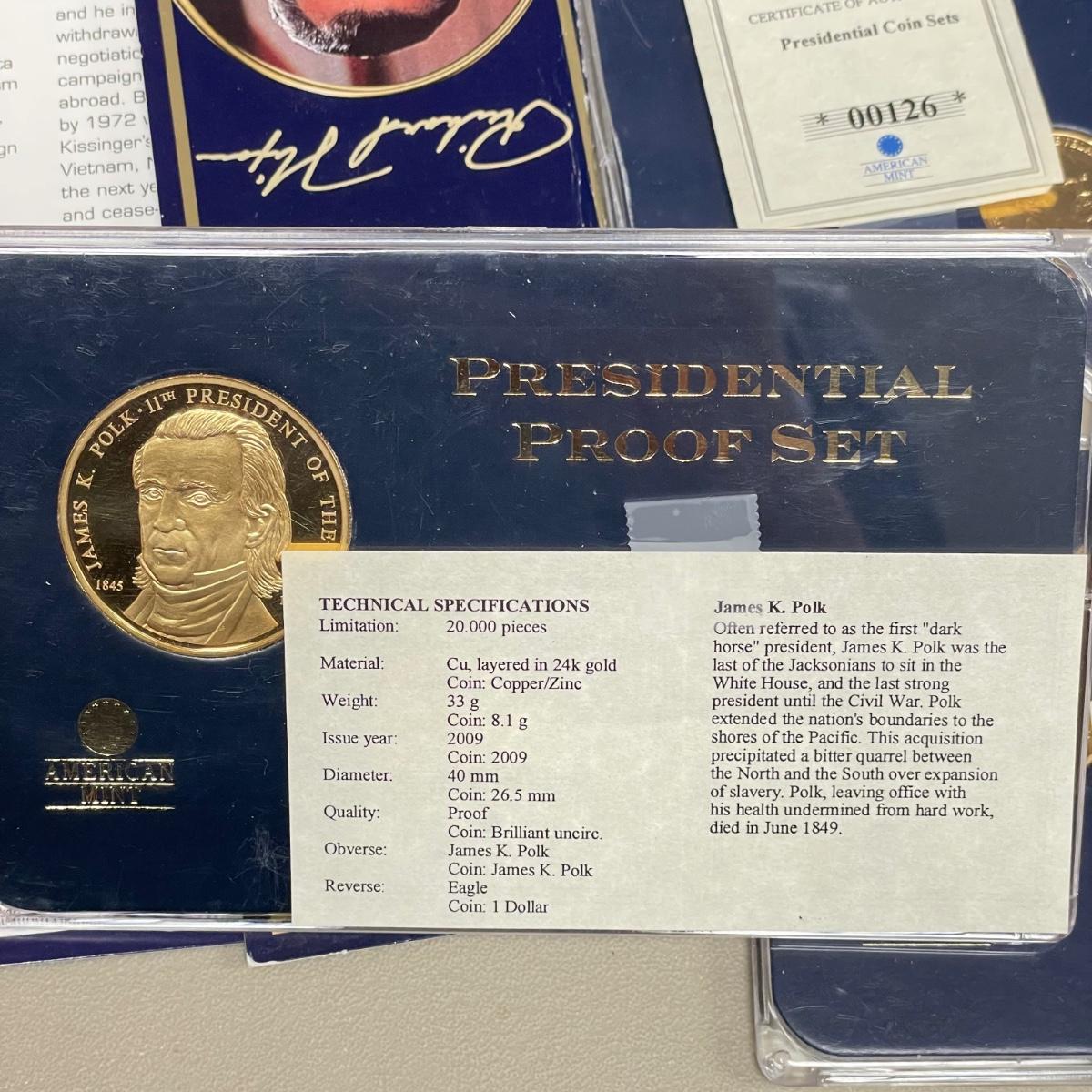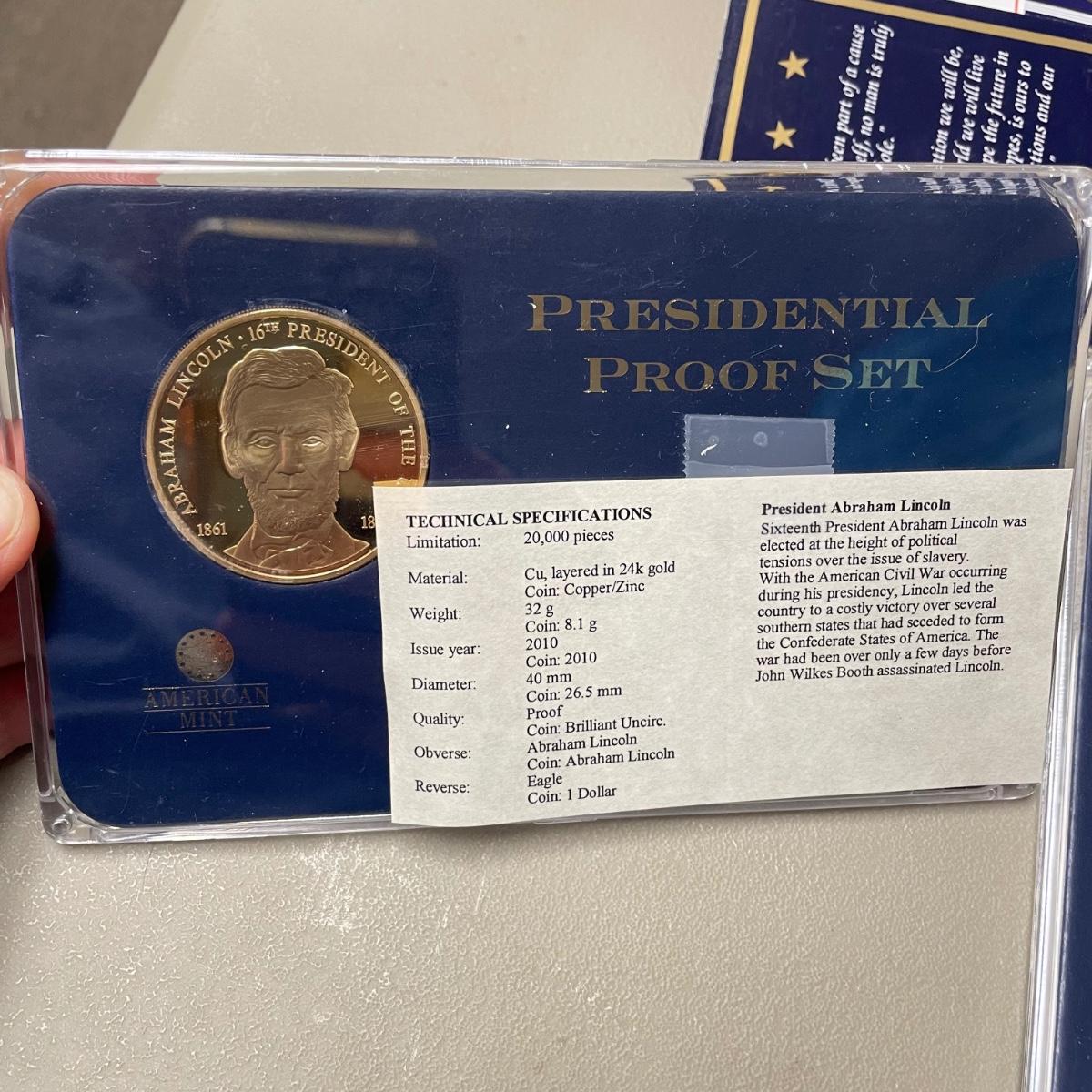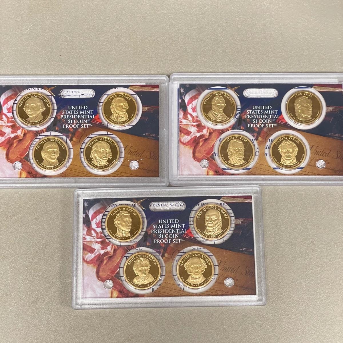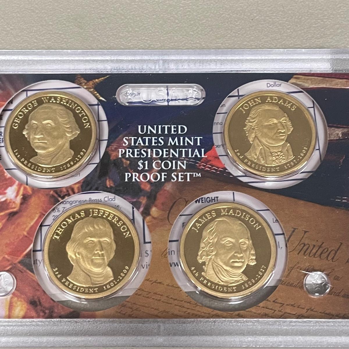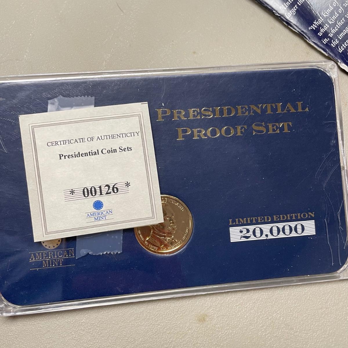 Large collection of presidential dollars coins, the majority of the packaging states Proof. A few sets have medallions included plus a few stamps. See images. Starting bid is at face value. All sales are final. No returns or refunds. Please bid accordingly. Shipping available.