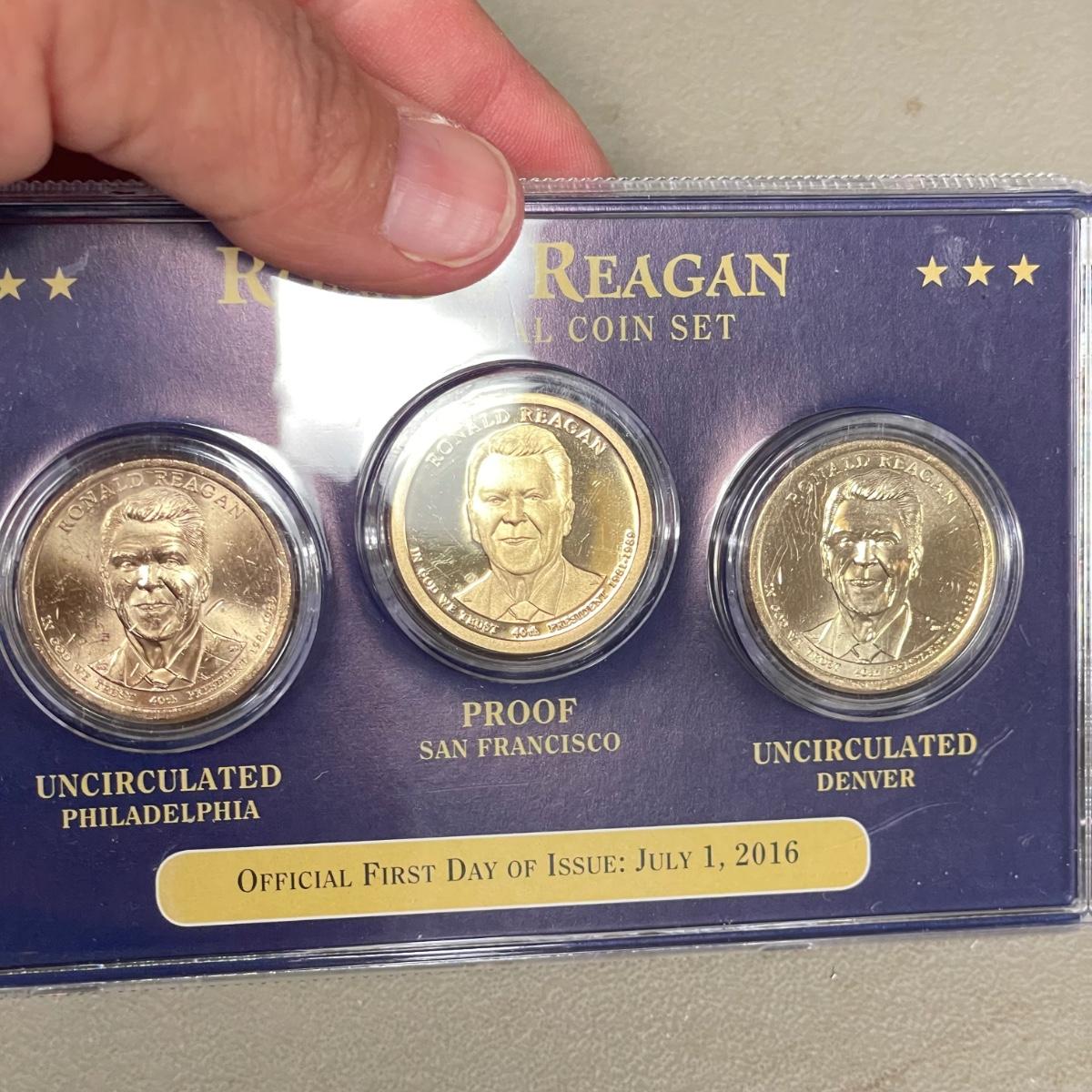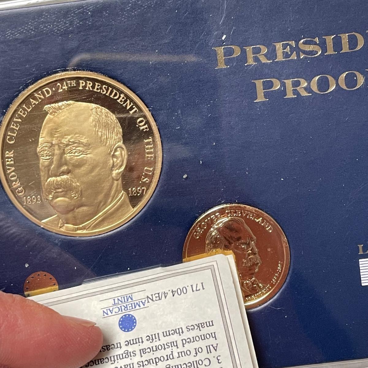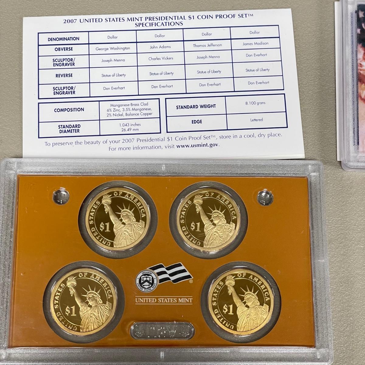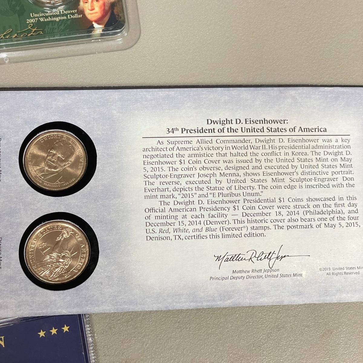 Large collection of presidential dollars coins, the majority of the packaging states Proof. A few sets have medallions included plus a few stamps. See images. Starting bid is at face value. All sales are final. No returns or refunds. Please bid accordingly. Shipping available.