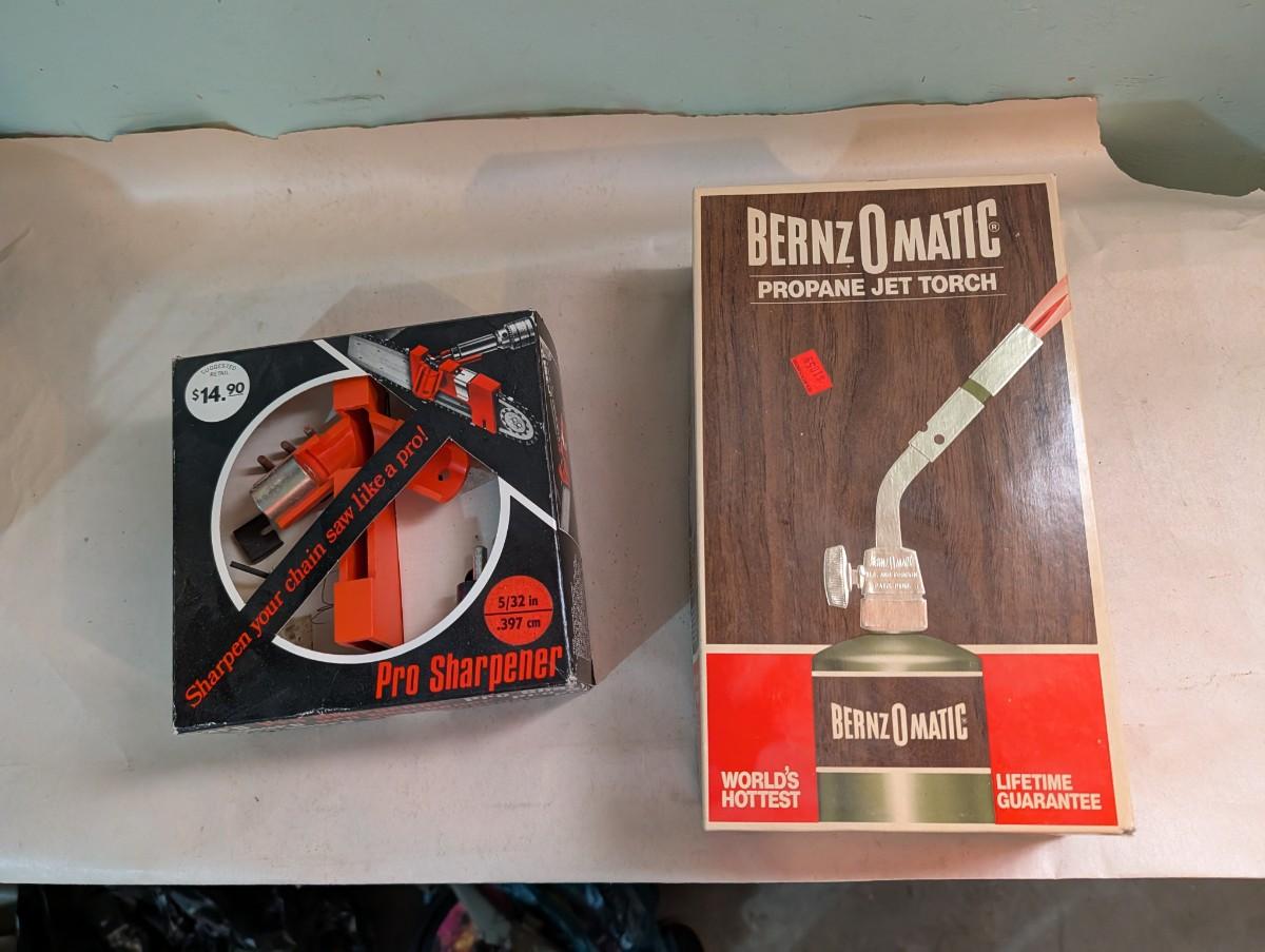 Chain saw sharpener, and WORLDS HOTTEST Bernz O matic propane jet torch. Neither were tested.