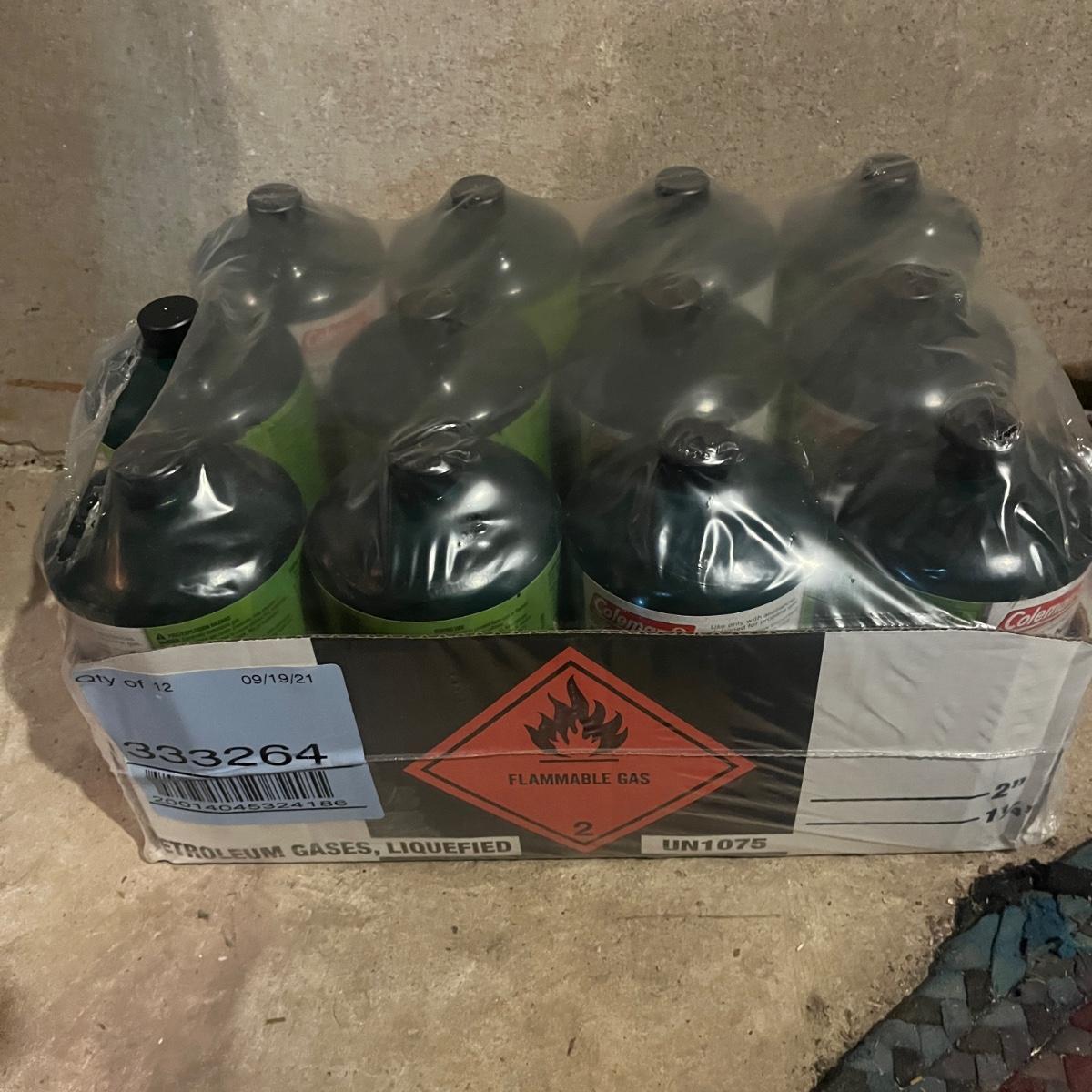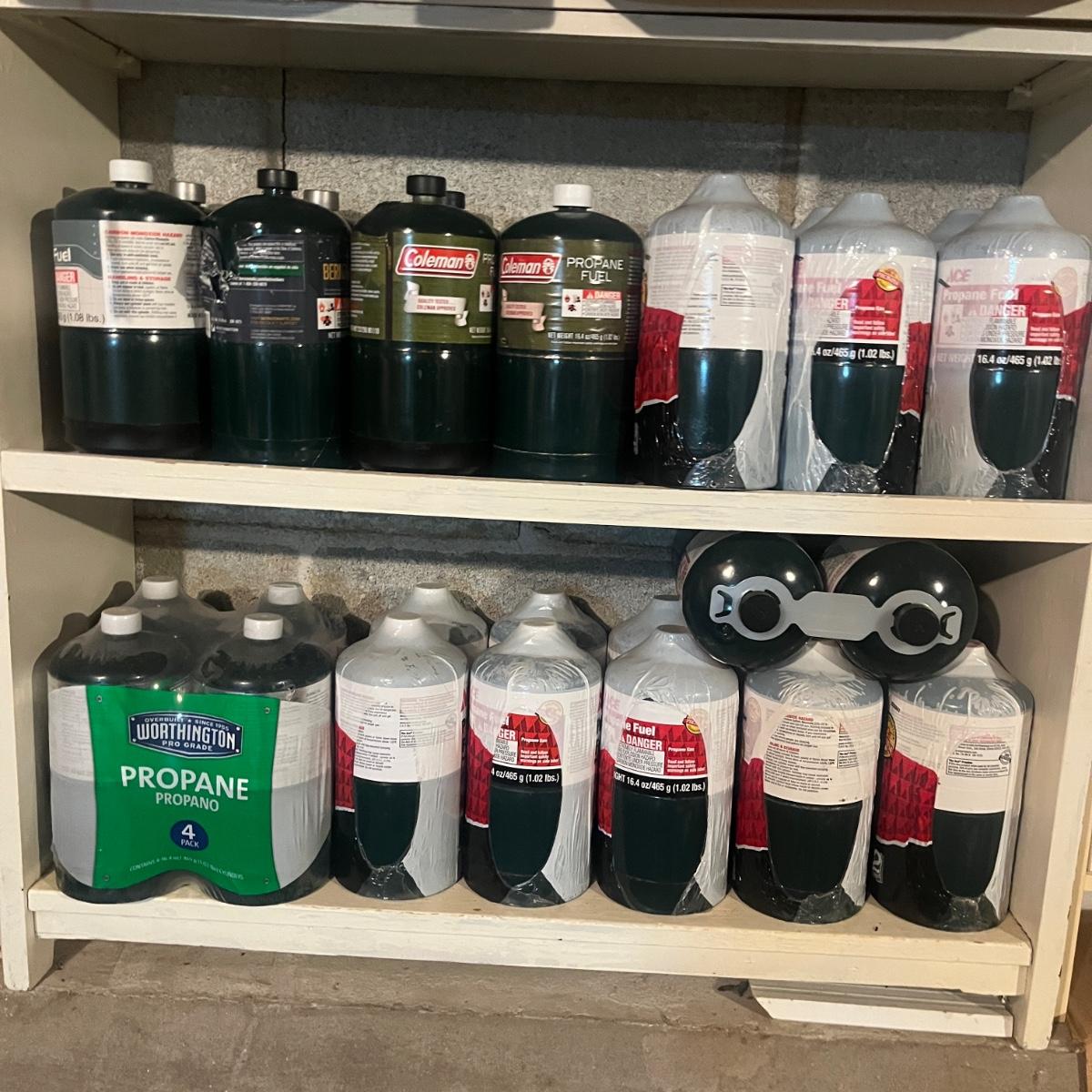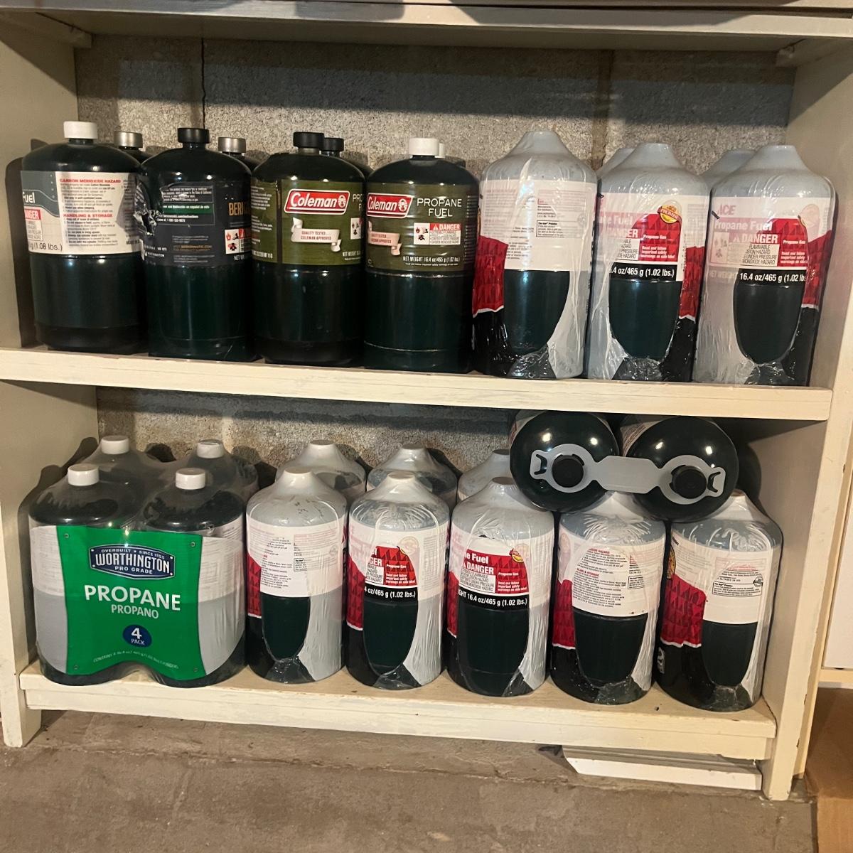 Lot includes over forty 16.4 ounce propane fuel cans. All cans appear full, but we cannot guarantee it.