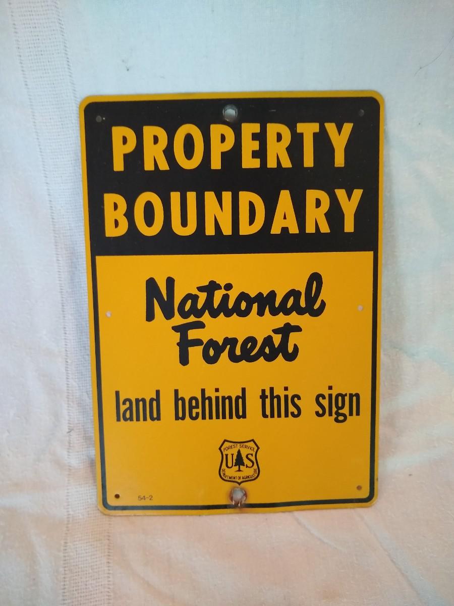 Property Boundary. National Forest Land behind this sign. 10" by 7"
