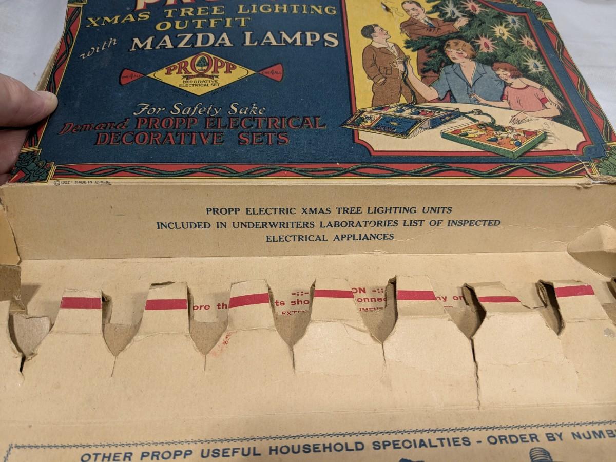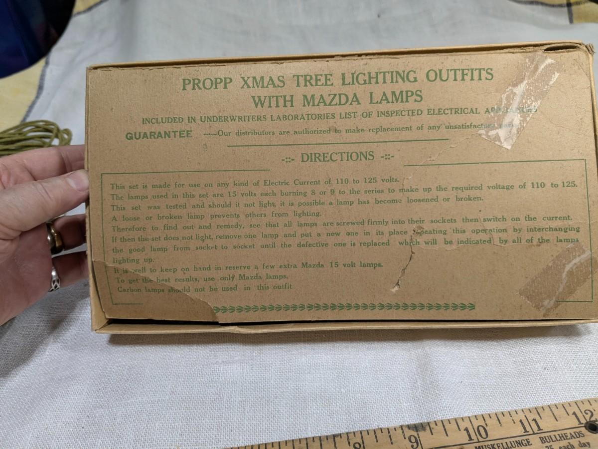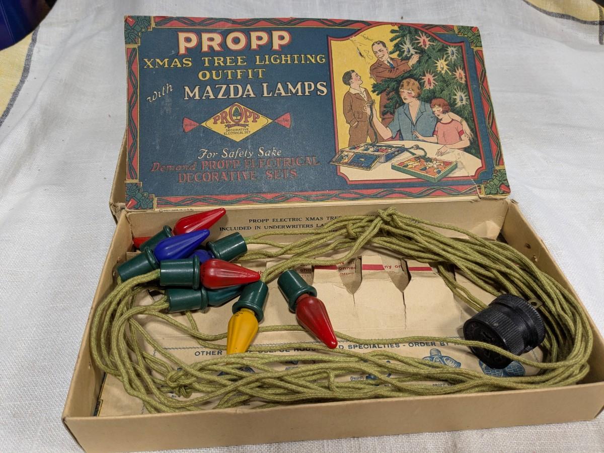 Propp Cloth Covered Cord Xmas Lights Mazda Lamps Org Box 1920s