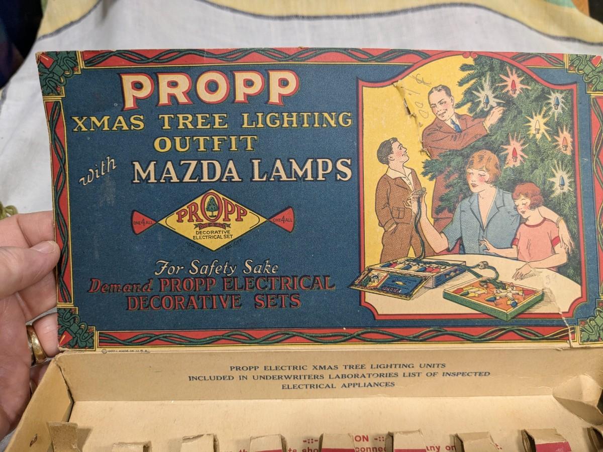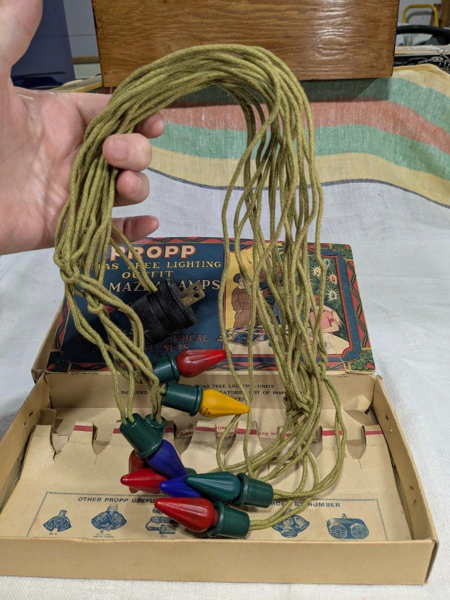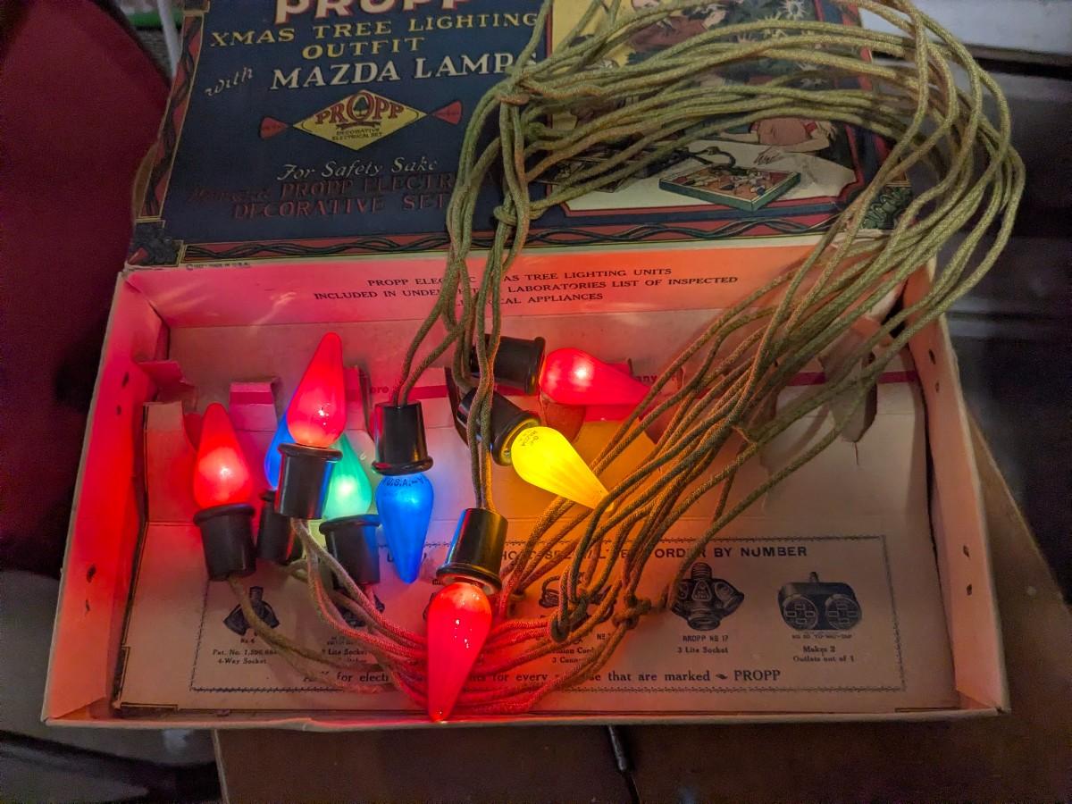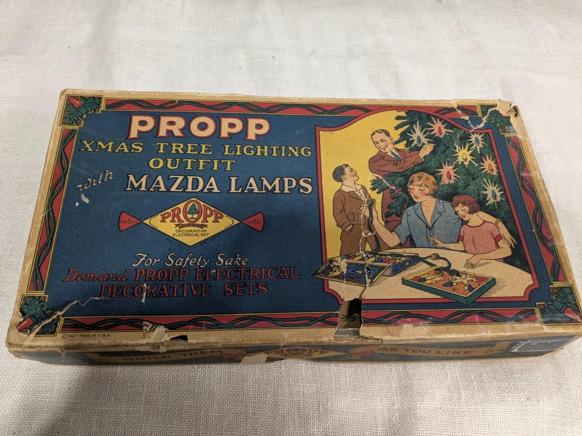 Propp Cloth Covered Cord Xmas Lights Mazda Lamps Org Box 1920s