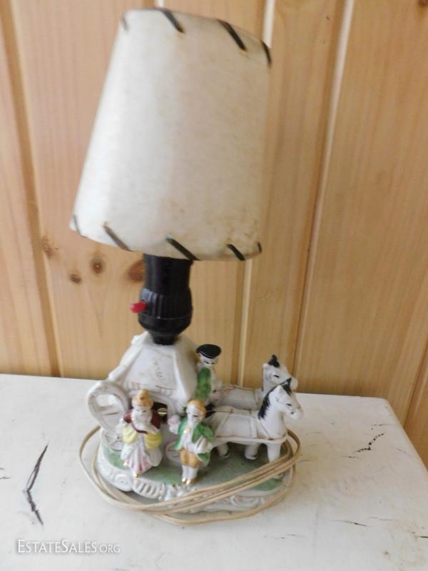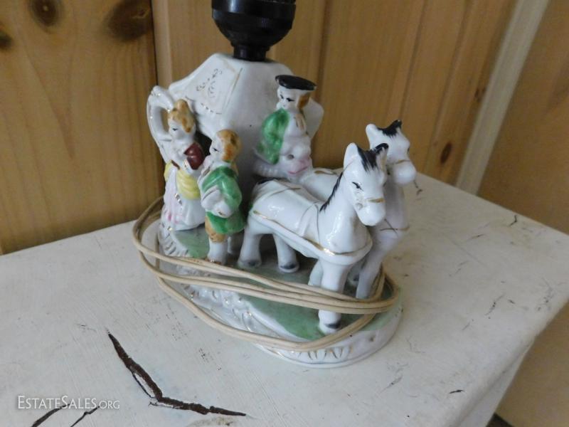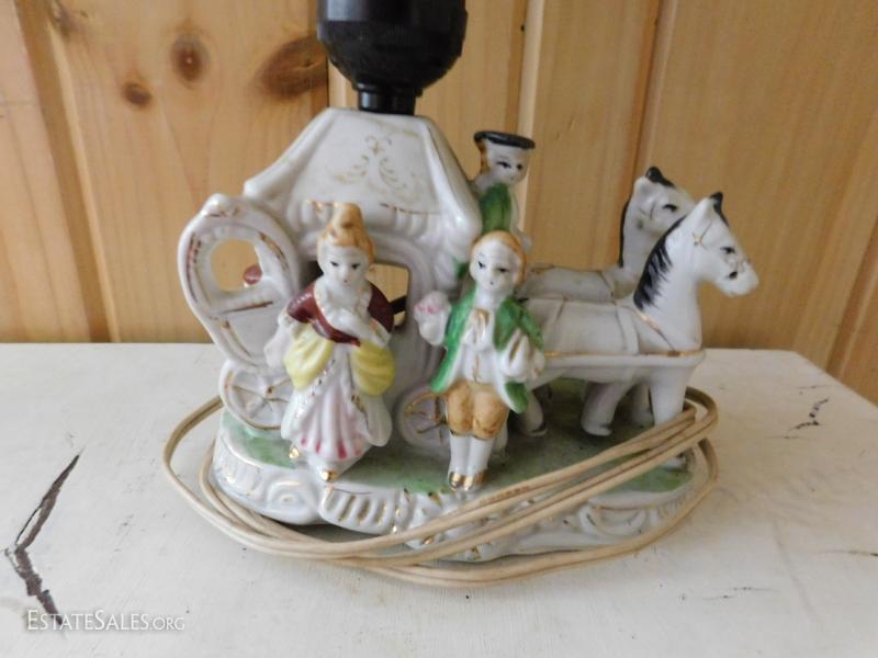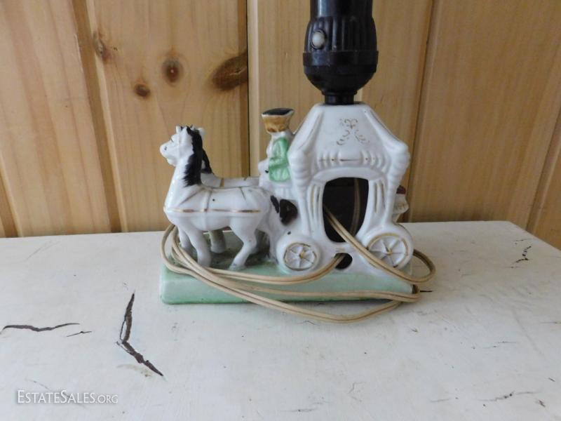 Provencial Porcelain Table Lamp needs new cord. diminutive horse and carriage.