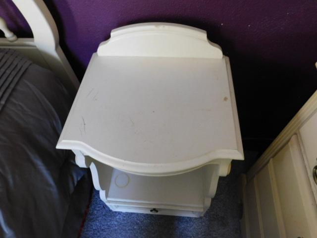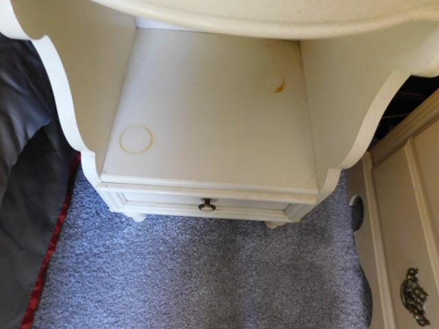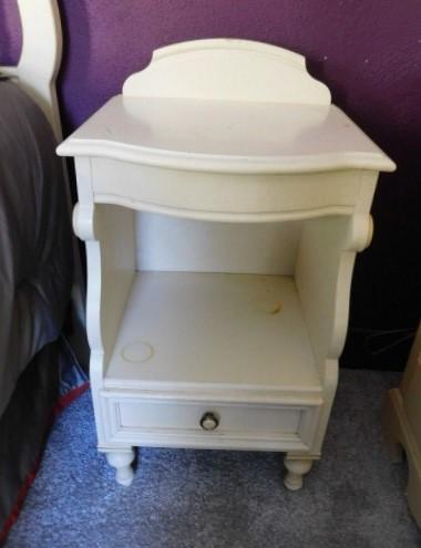 Provencial White Bedside Table 16" x 27" has some markings and stains but solid