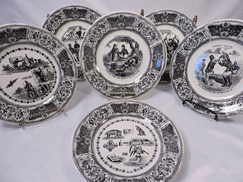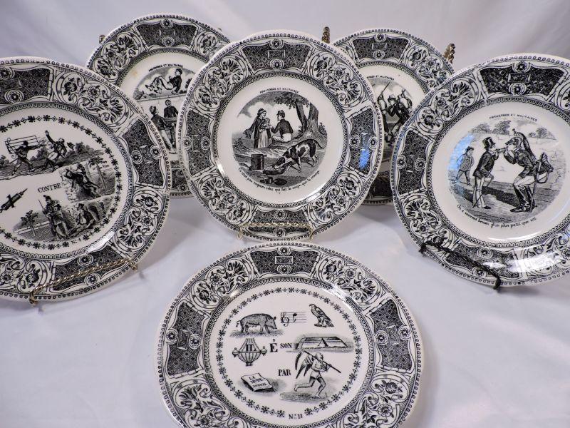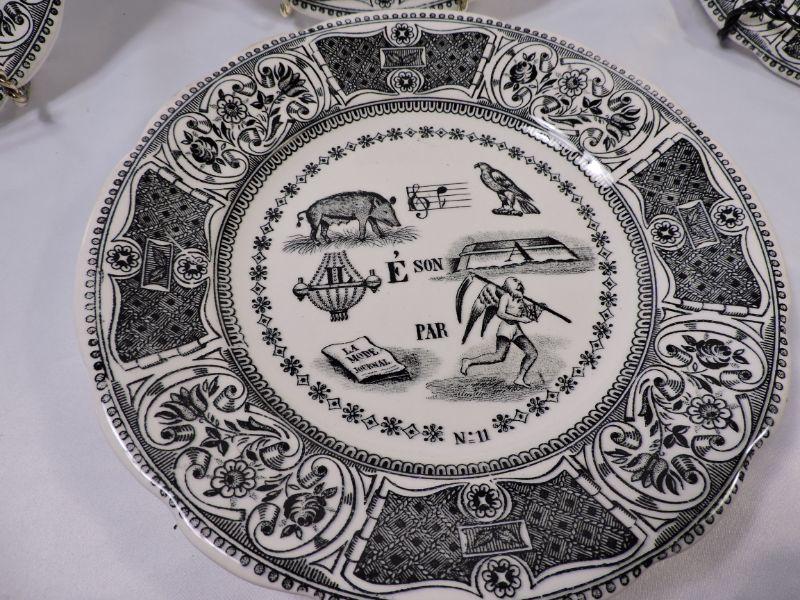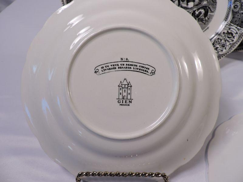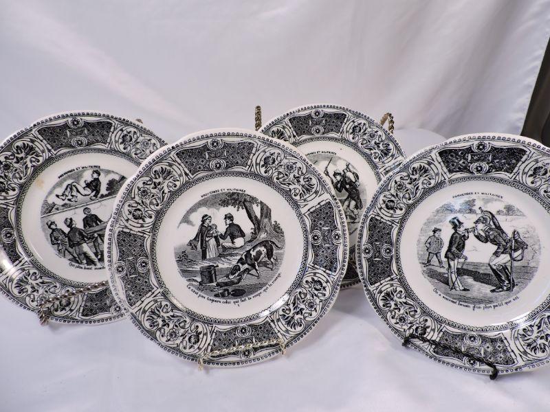 4 Proverbes Et Militaires plates, as well as two more from Gien, France. **Please read Terms and Conditions before placing a bid. Pick up is Sunday, November 24 from 9am to 3pm or Tuesday, November 26 from 4pm-7pm in Mantua, NJ. All sales are final. All sales are as is, where is. Please review all photos. Any props included in photos are not included in listing. All measurements are approximate.