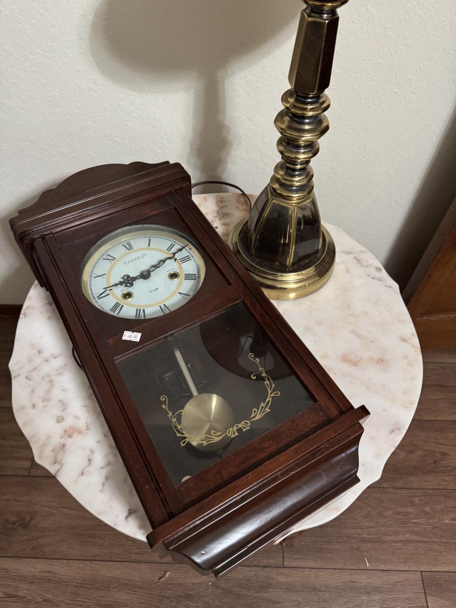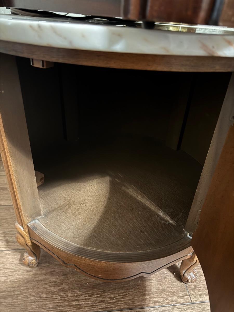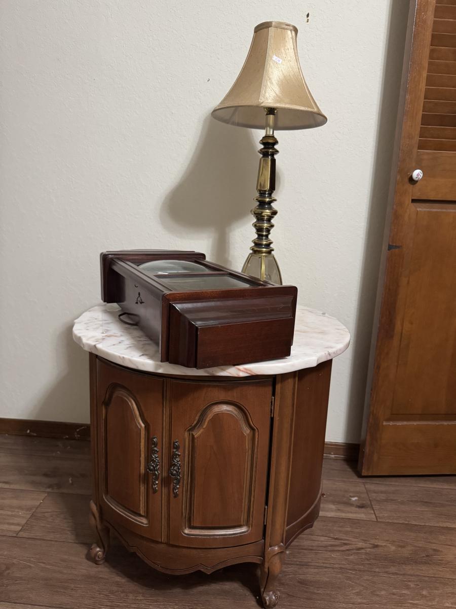 PROVINCIAL MARBLE DRUM TABLE WITH CLOCK AND LAMP