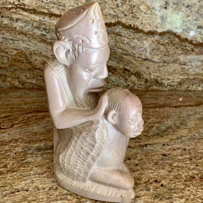 PT3#21  KISII KENYA STONE SCULPTURE FATHER & CHILD