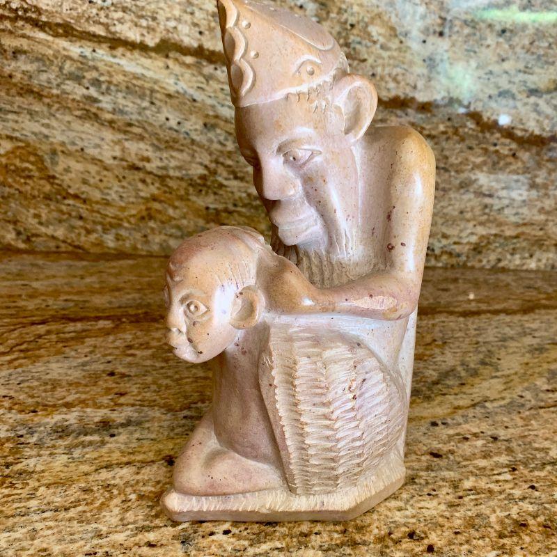 PT3#21 KISII KENYA STONE SCULPTURE FATHER & CHILD