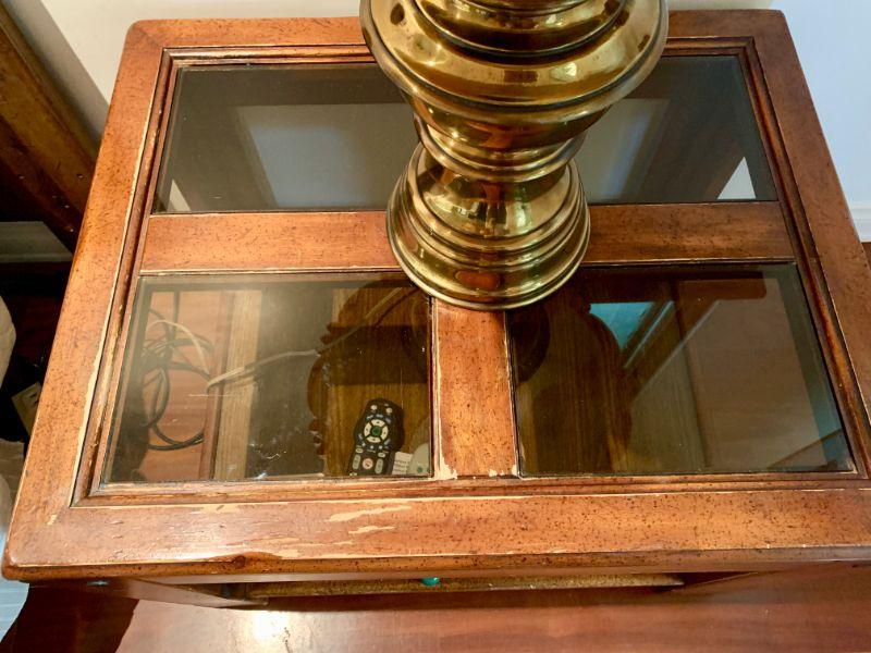 PT3#37  PAIR OF VINTAGE BEDSIDE TABLES GLASS INSERTS AS IS