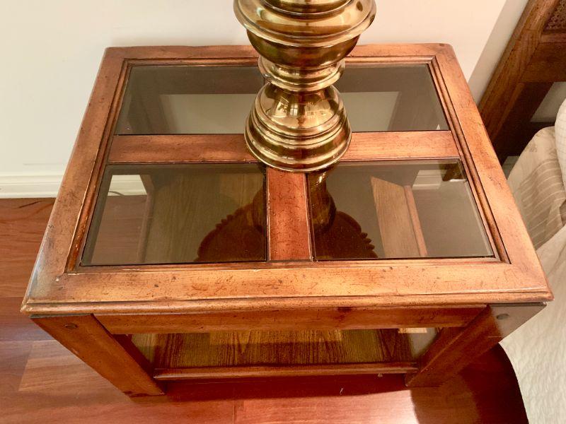 PT3#37 PAIR OF VINTAGE BEDSIDE TABLES GLASS INSERTS AS IS