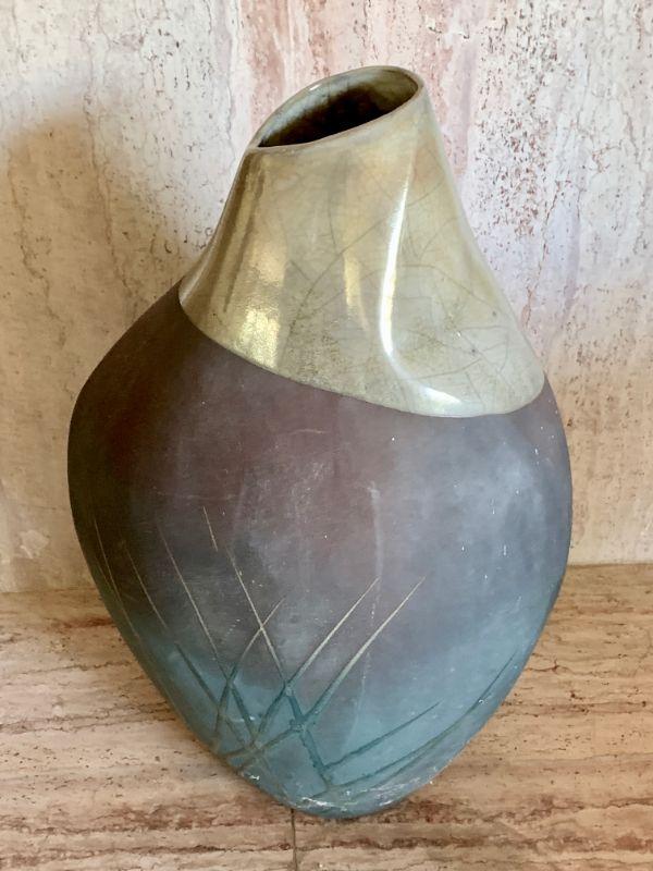 PT3#40  CONTEMPORARY MODERNIST ASYMMETRICAL ART POTTERY VASE MATTE & METALLIC GLAZES
