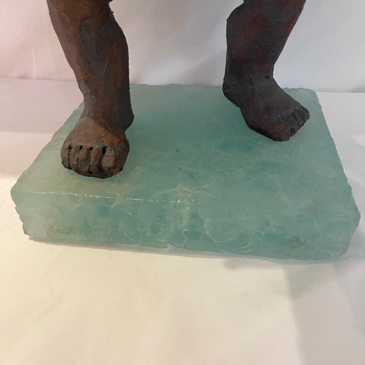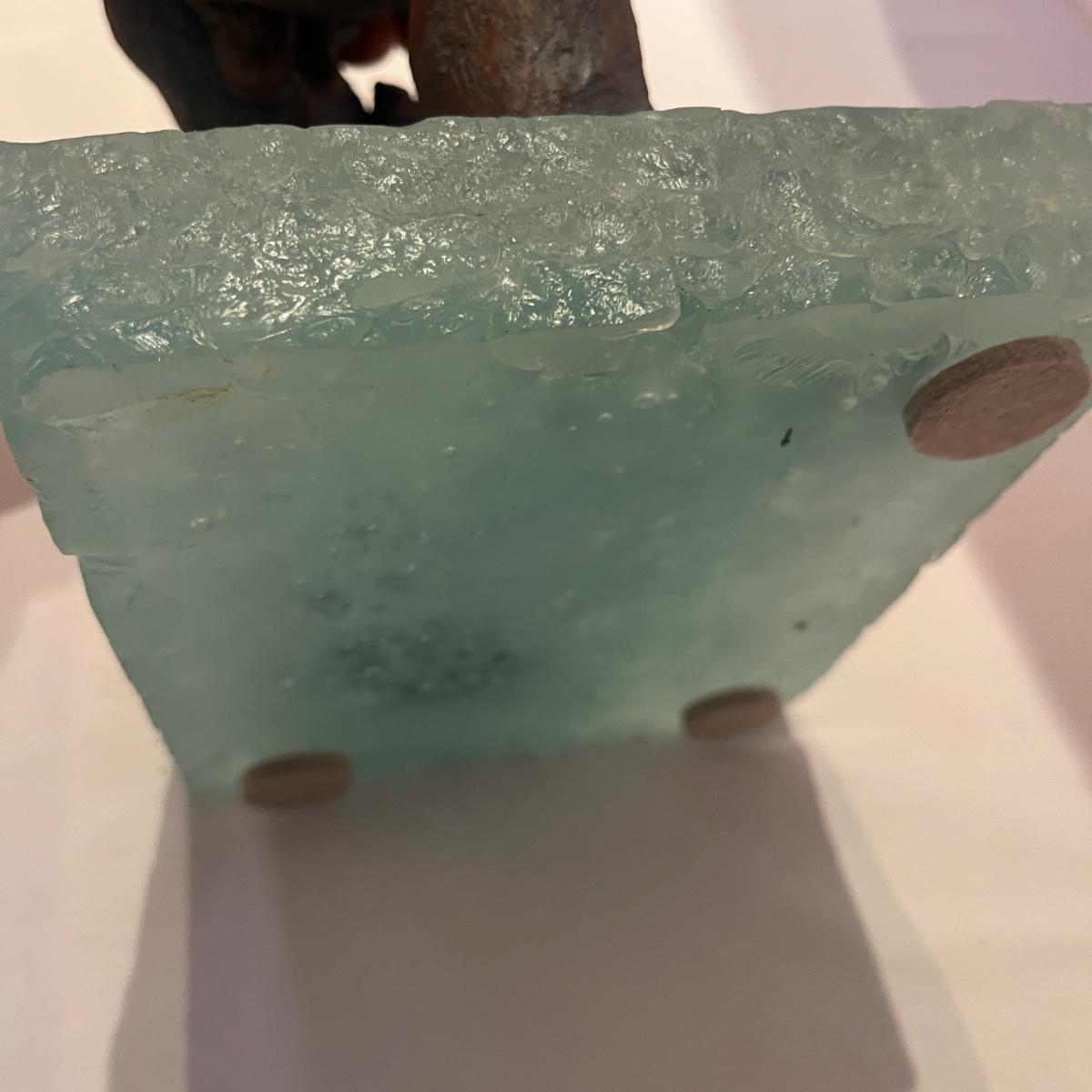 This stature appears to be Páte De Verre style which is translated from French to mean glass paste. Statue measures 8” x 8.5” x 13”H.