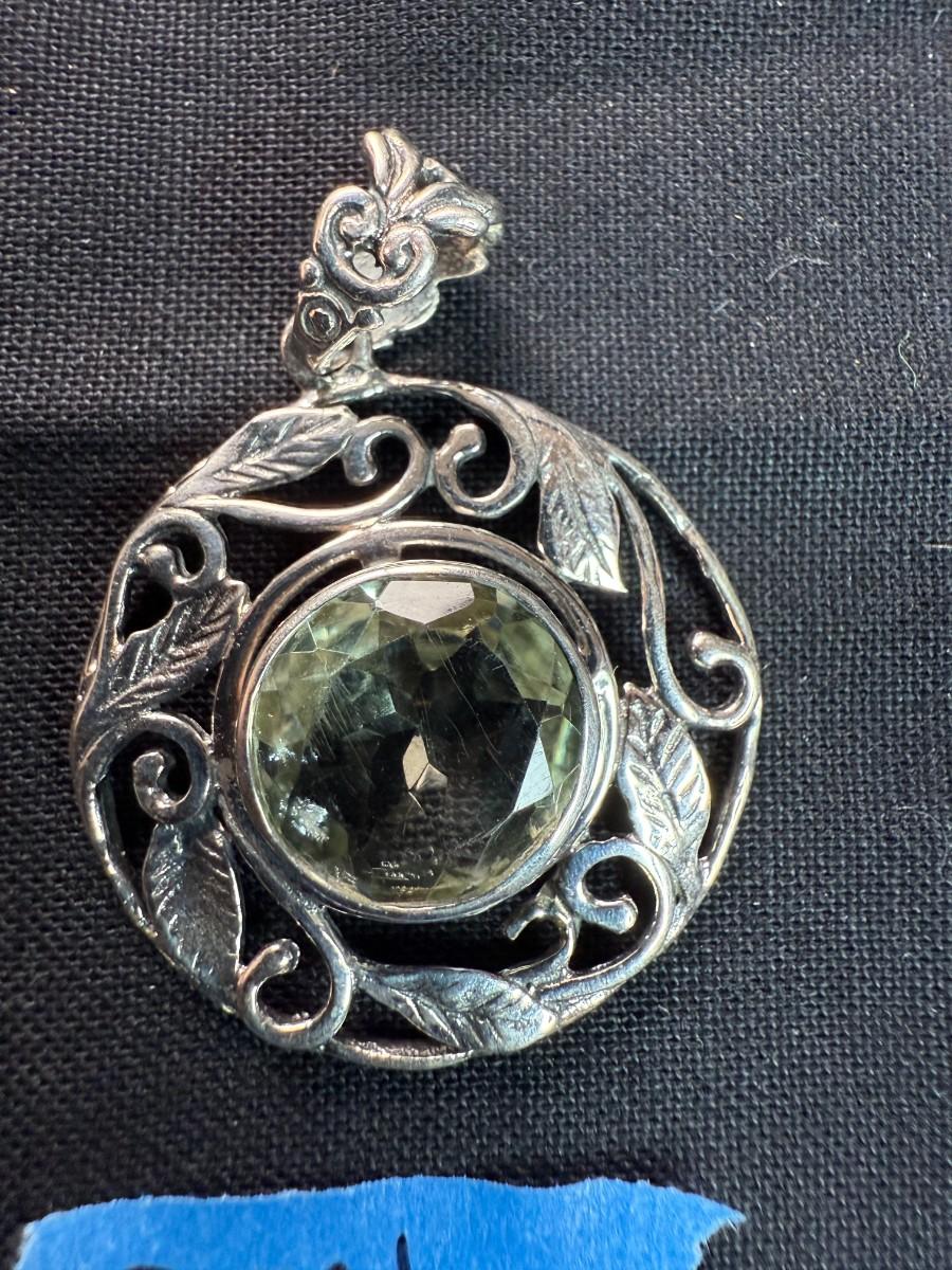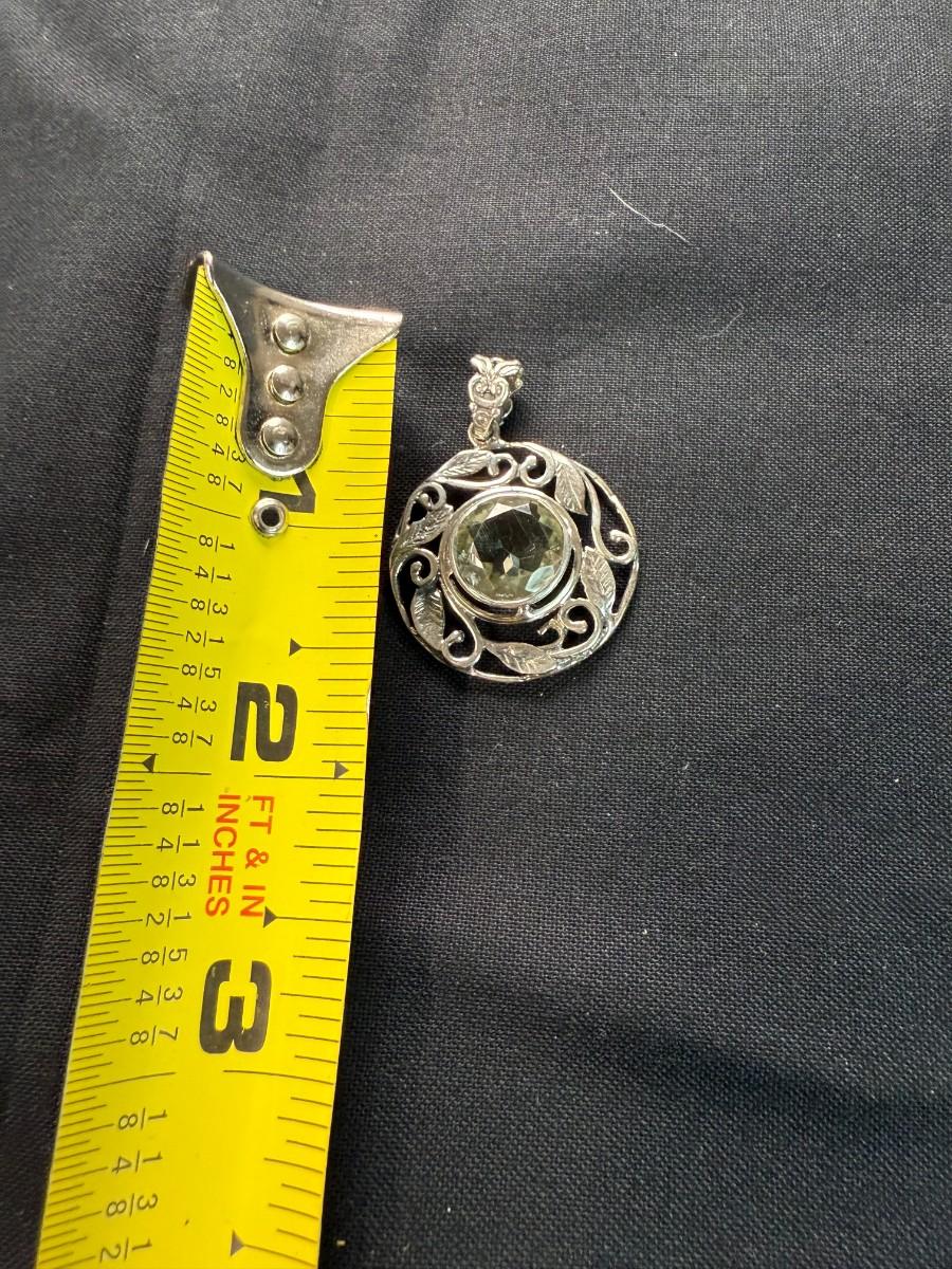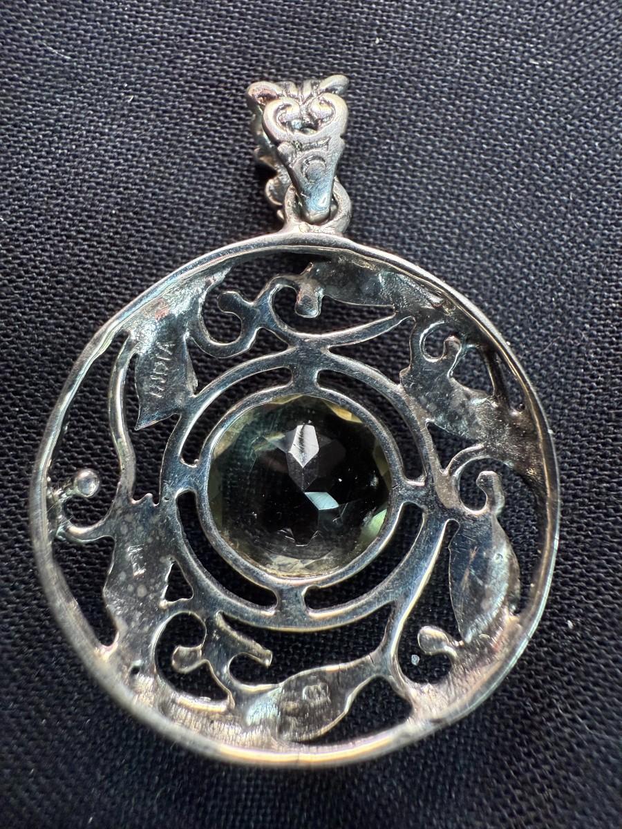 PTI Sterling 925 Faceted Green Amethyst Gemstone Leaf Round Pendant