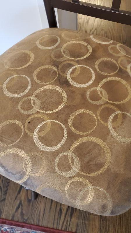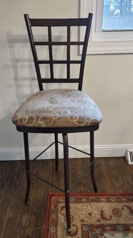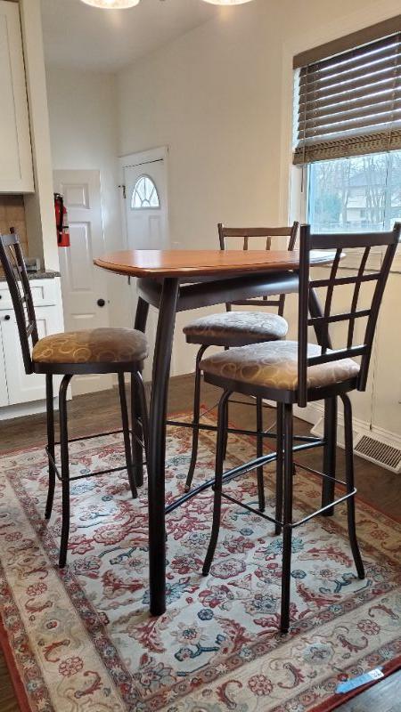 Four piece dinette set with swivel stools. Upholstery on stools need cleaning.
