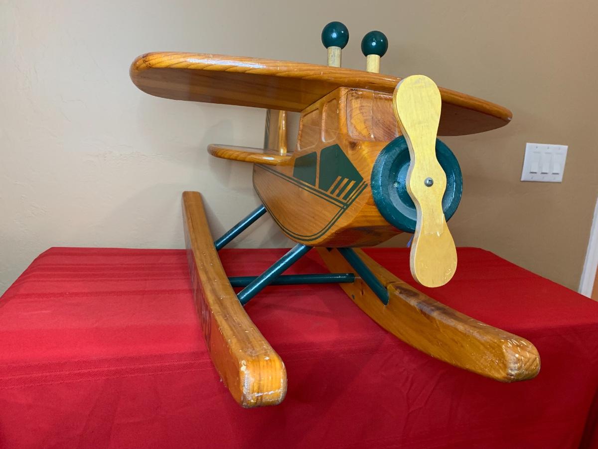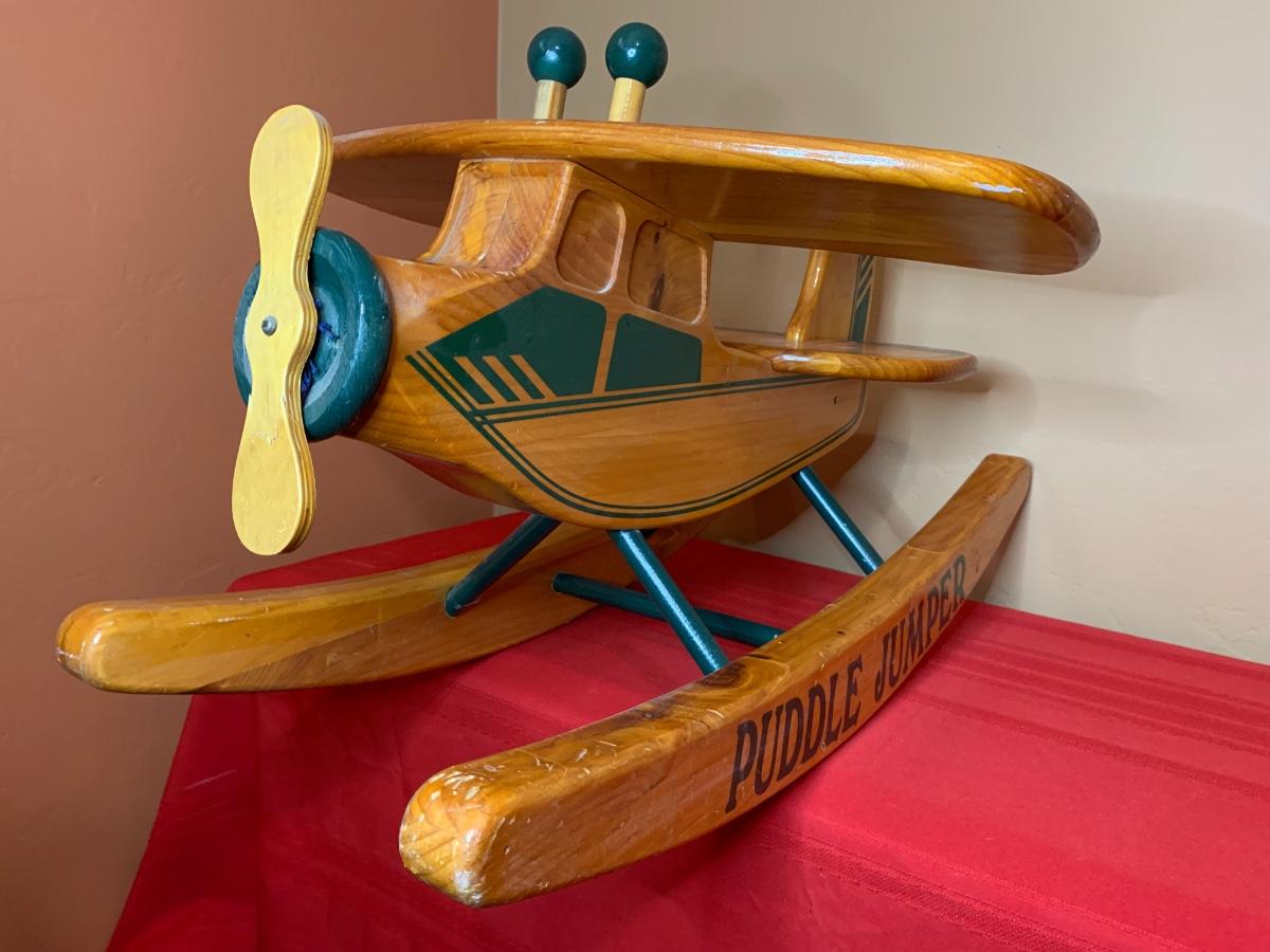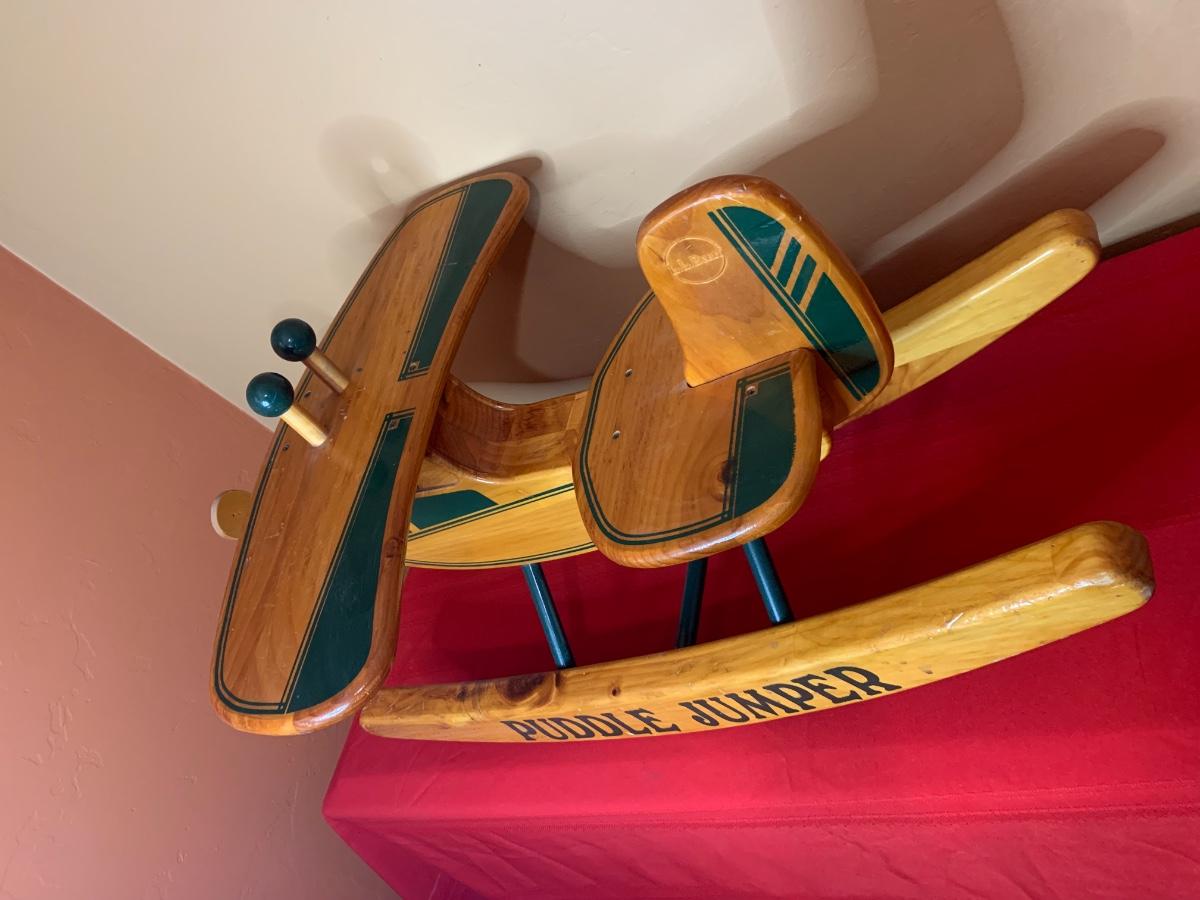 One LL Bean wooden puddle jumper rocker plane in excellent condition. (Length=32 inches, width= 23 inches, Height=18 1/2 inches at tallest point)