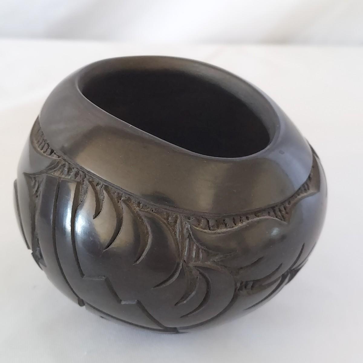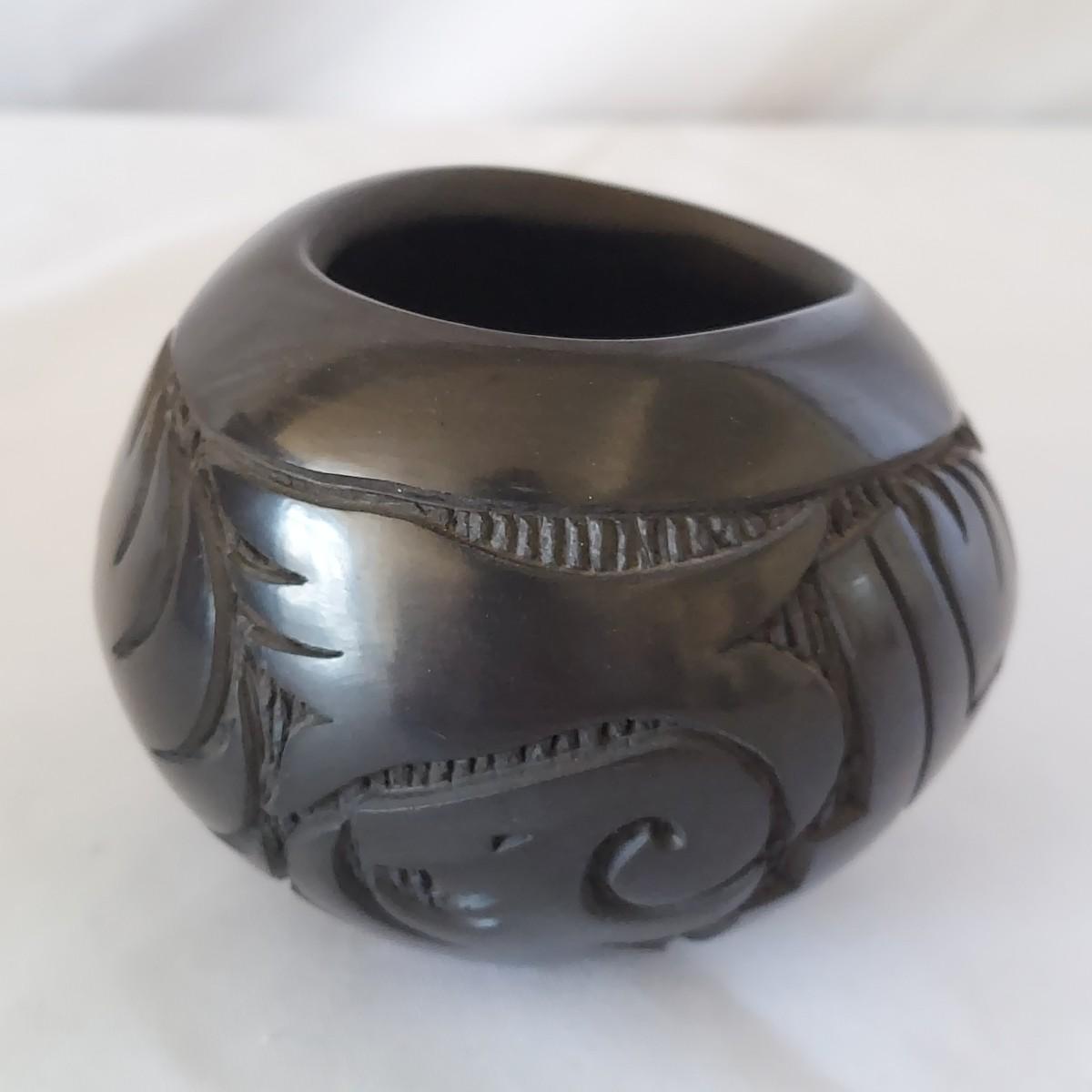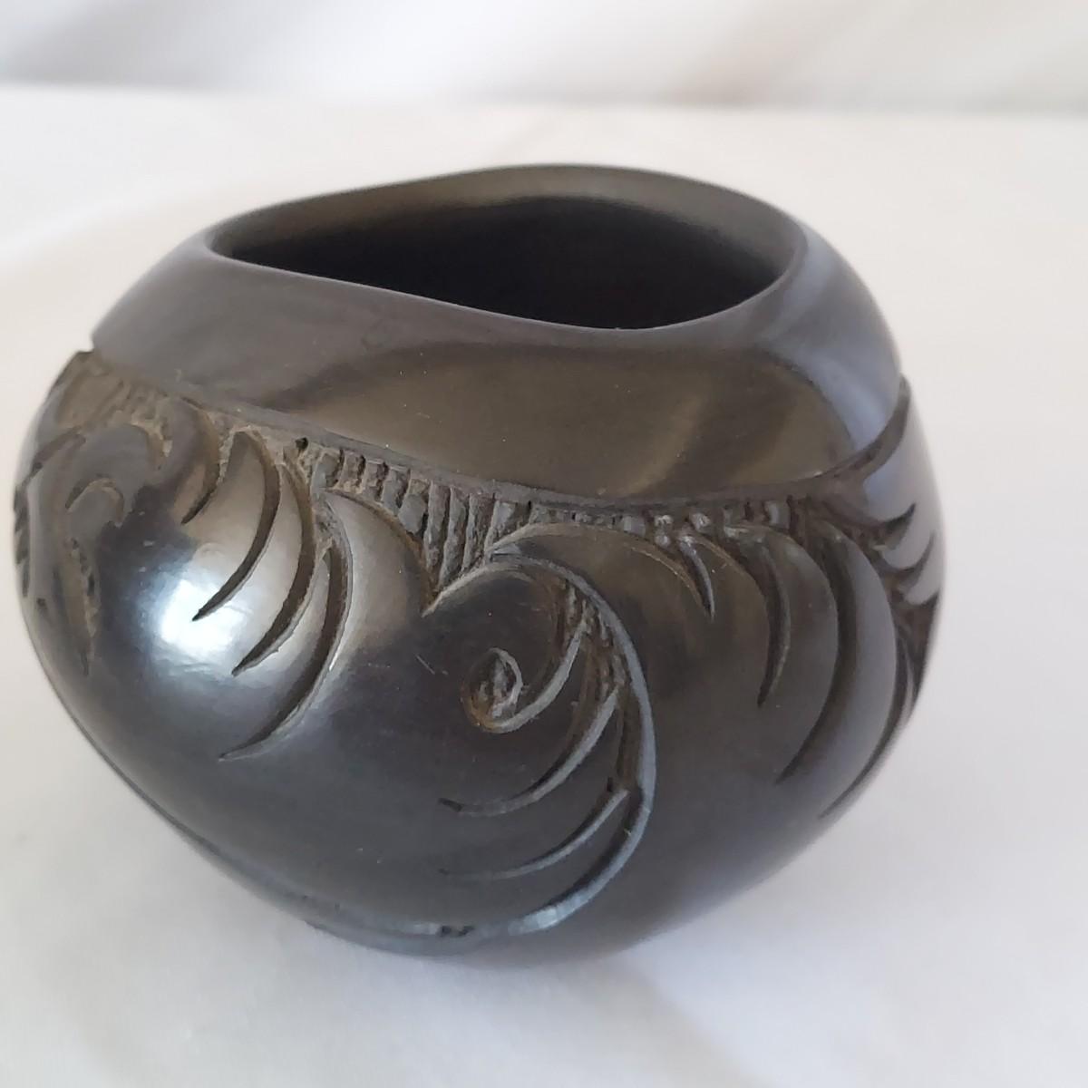 Piece appears to be a traditional Pueblo blackware pot by Kelli Little Kachina Tafoya of Santa Clara. Signed on the bottom. Piece measures 3.5” x 4” x 3"H. Please see photos for details. Shipping available.
