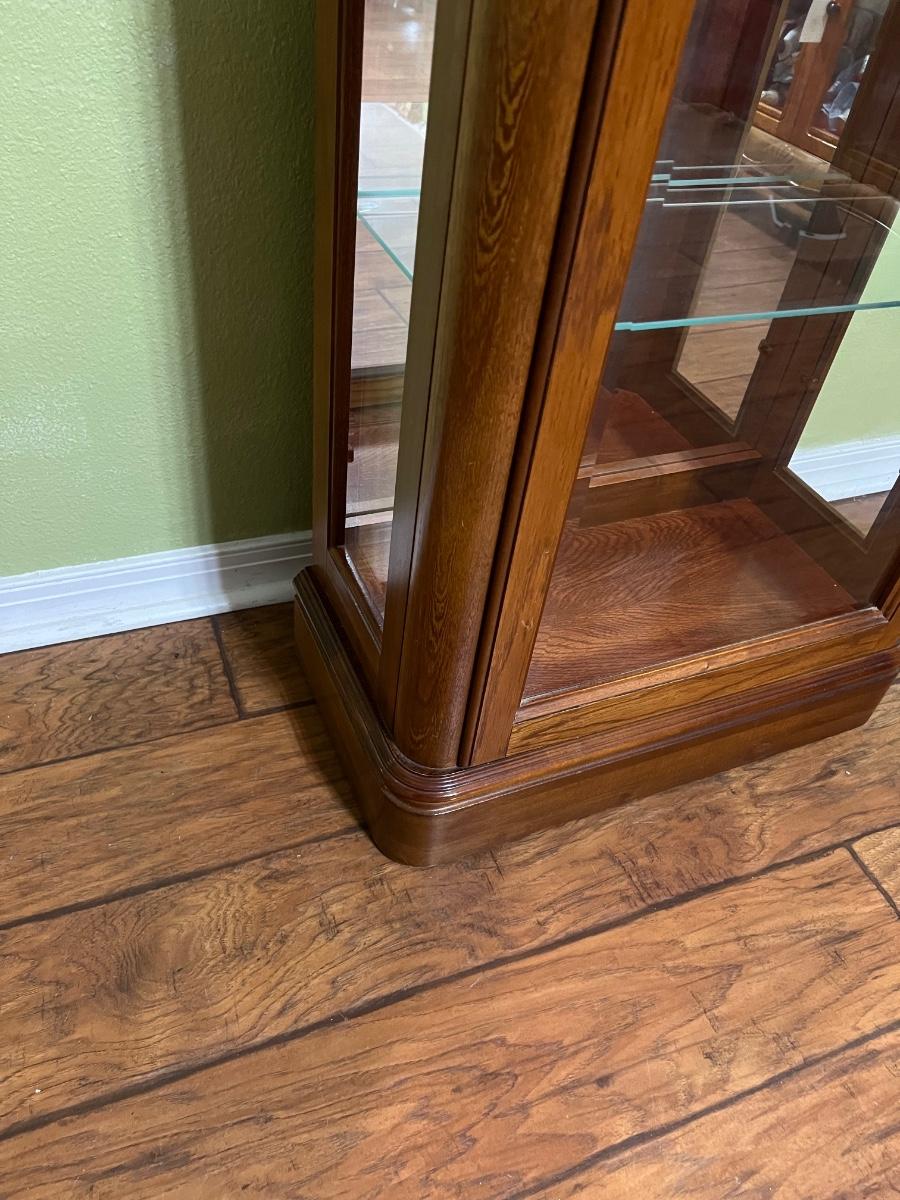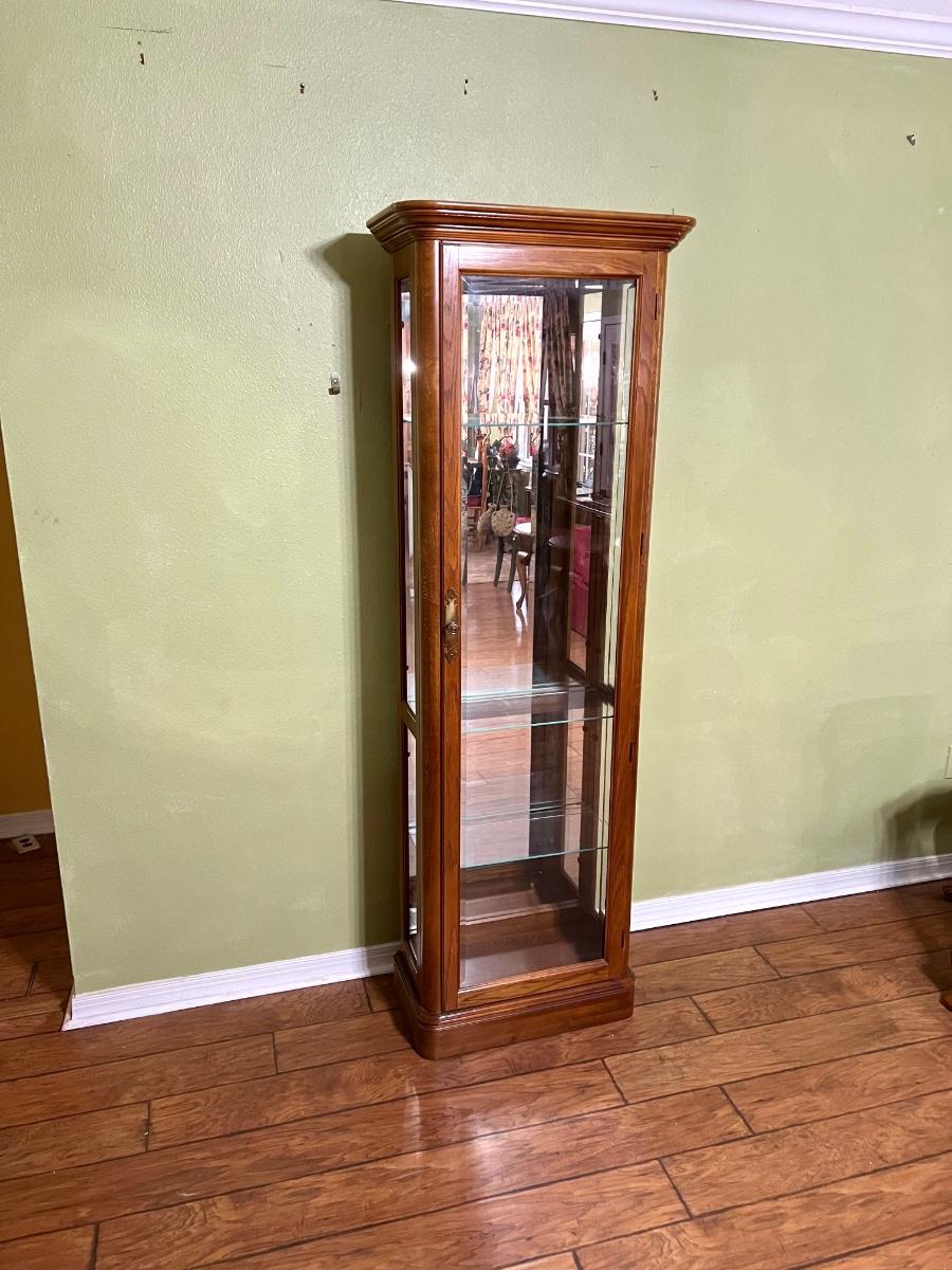 PULASKI FURNITURE CO ~ Oak Beveled Glass Door Lighted Curio Cabinet