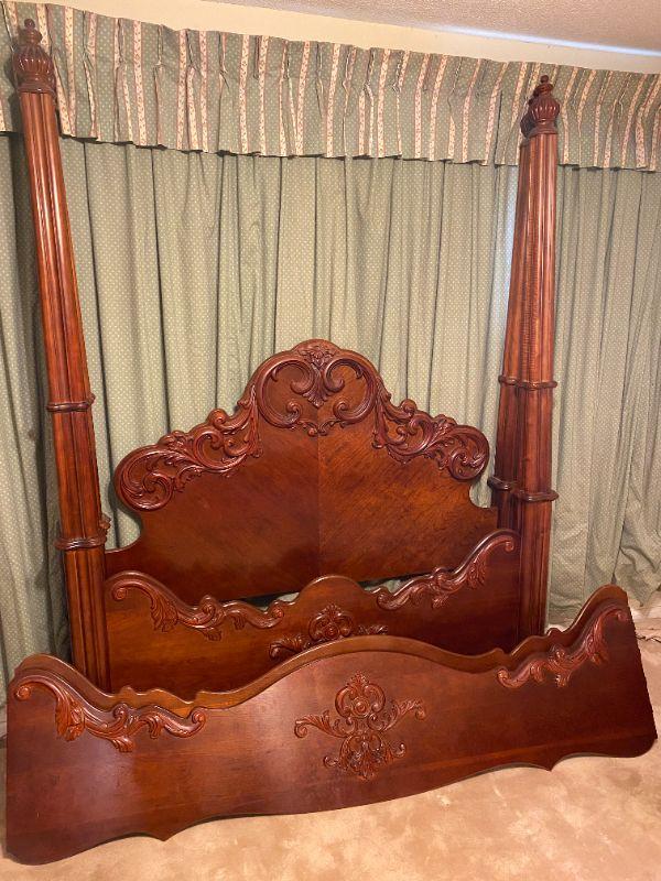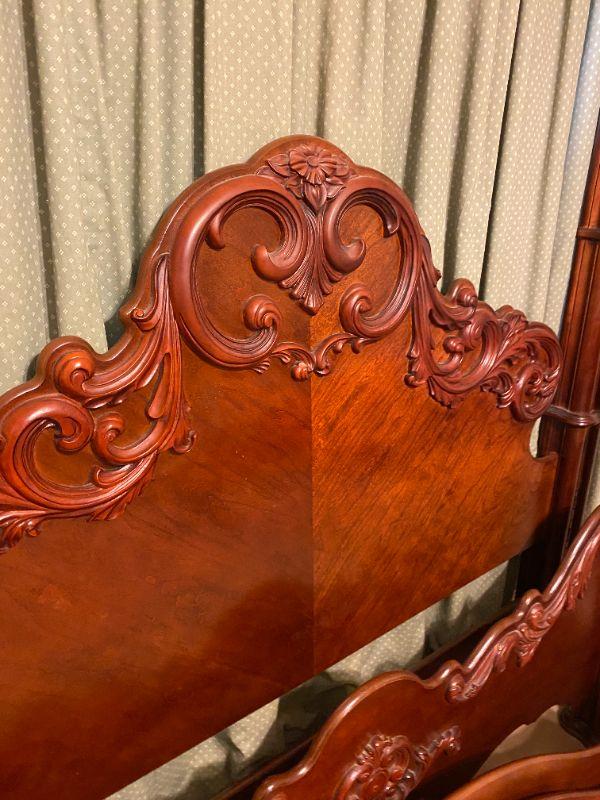 Pulaski Furniture Corp Queen High Post Bed, ornate high post bed with wide wood ornate rails