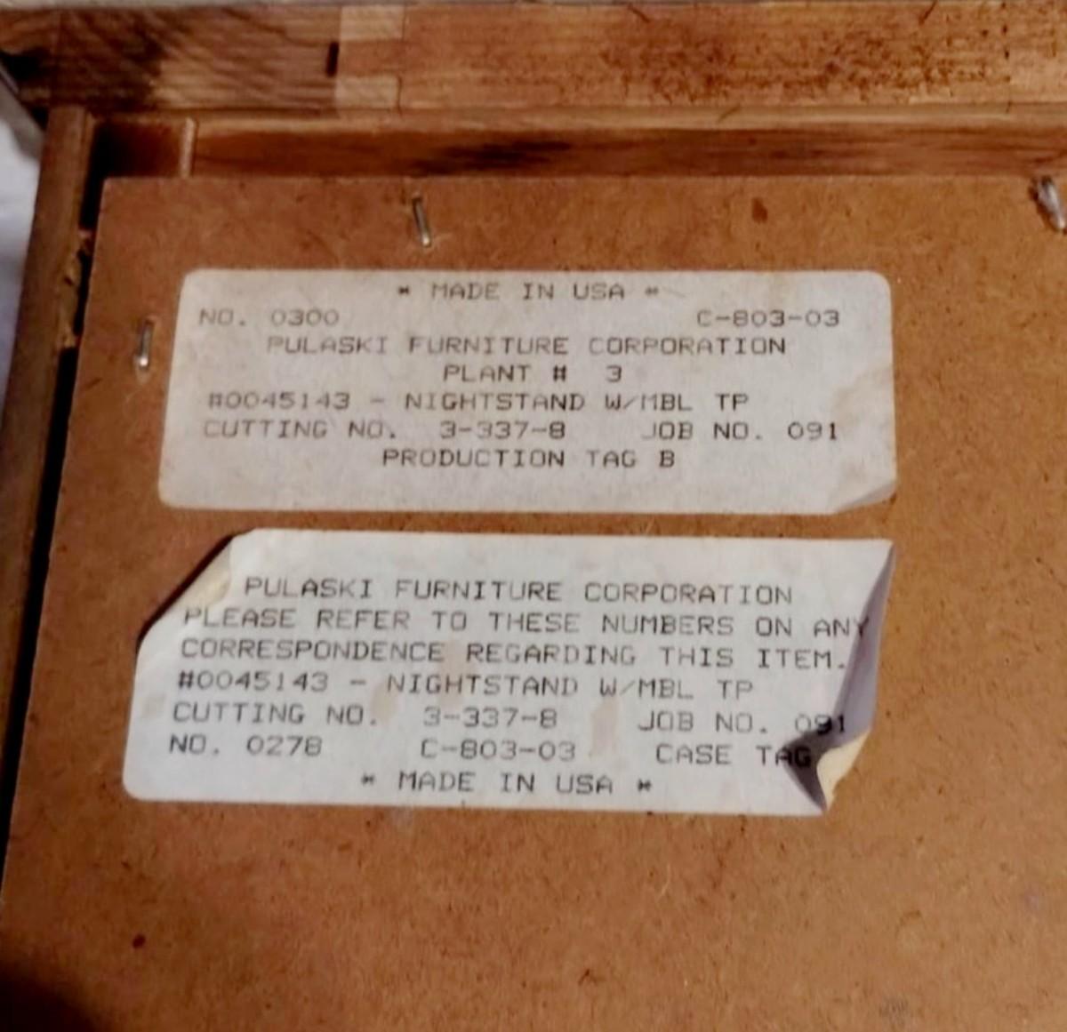 Pulaski Furniture Mahogany Victorian Marble Top Nightstand