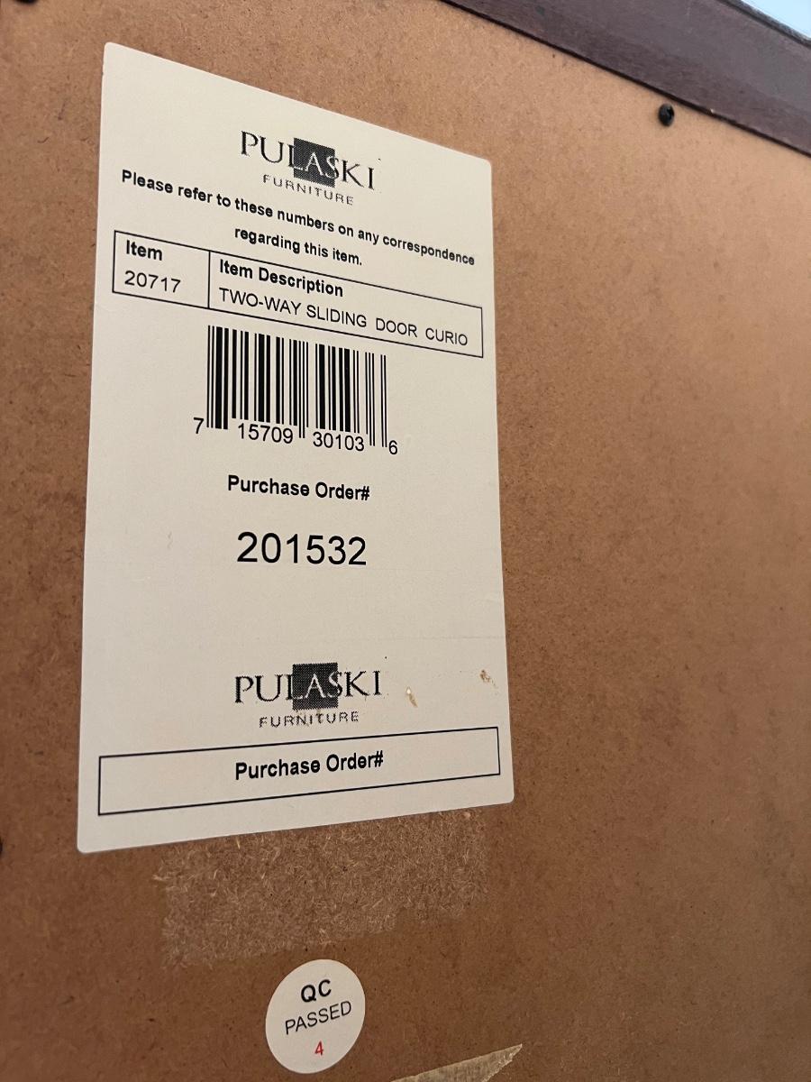 PULASKI KEEPSAKE Sliding Door Curio Cabinet With 5 Glass Shelves (B)