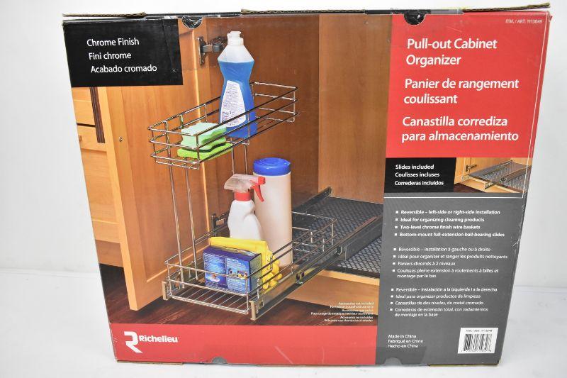 Pull Out Cabinet Organizer, Chrome Finish - New