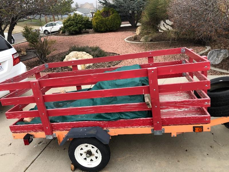 A nice single axle trailer that the homeowner purchased and then added all the wood sides