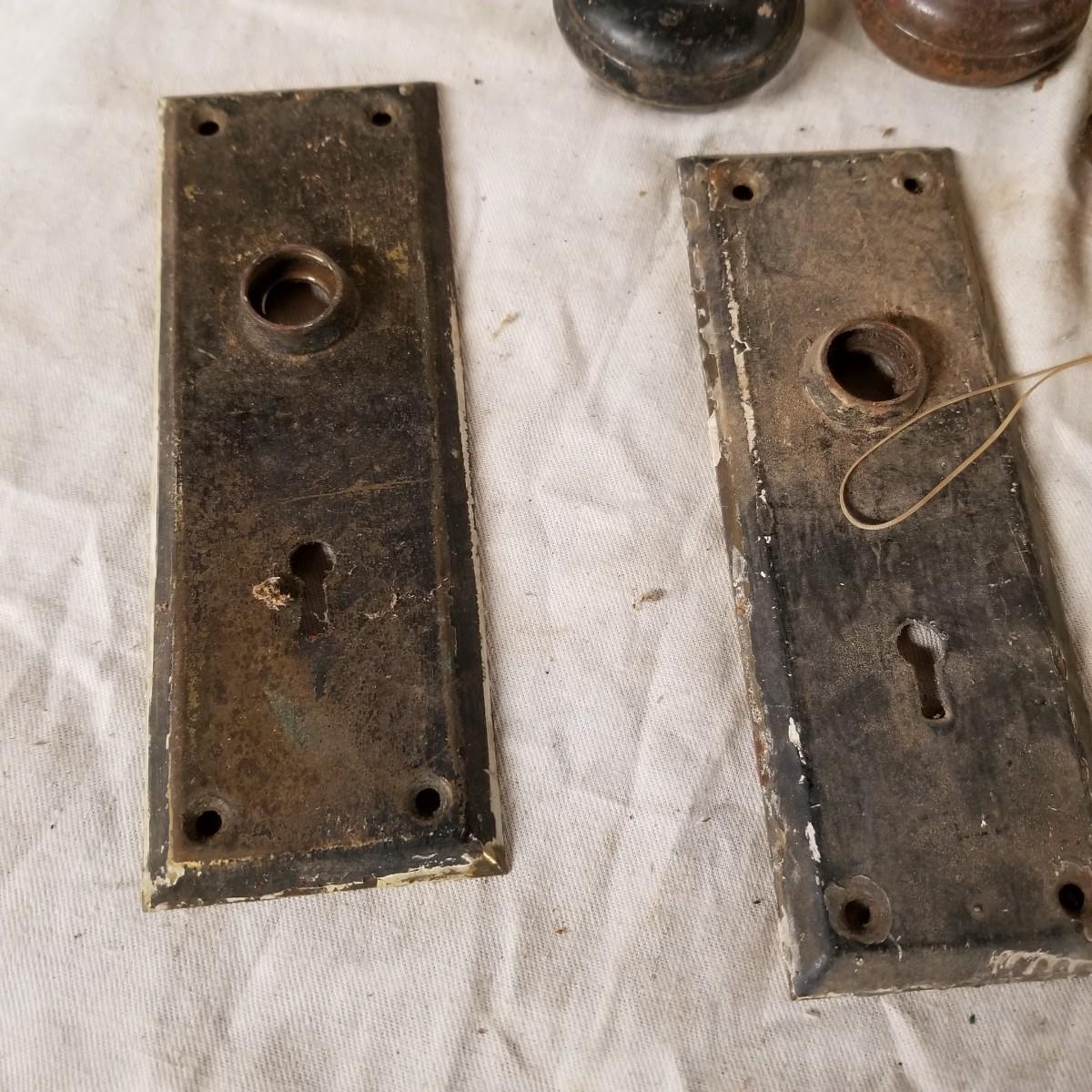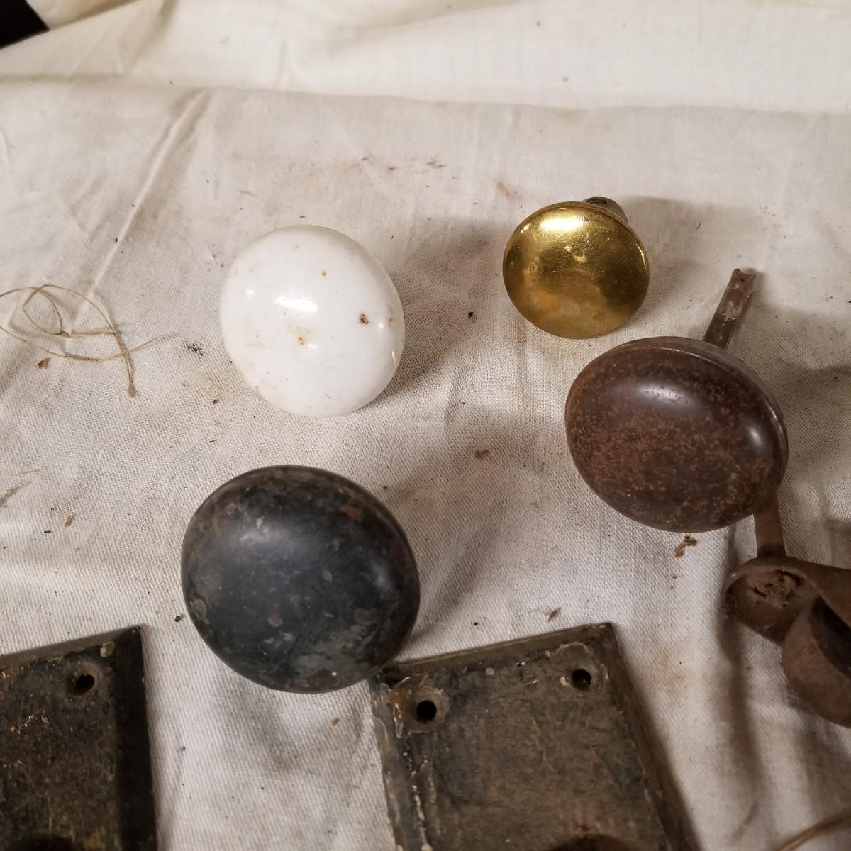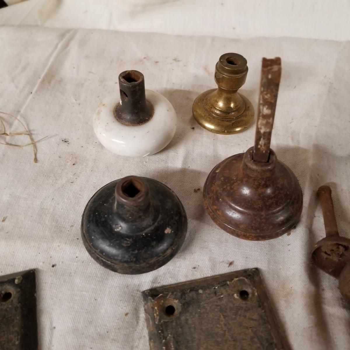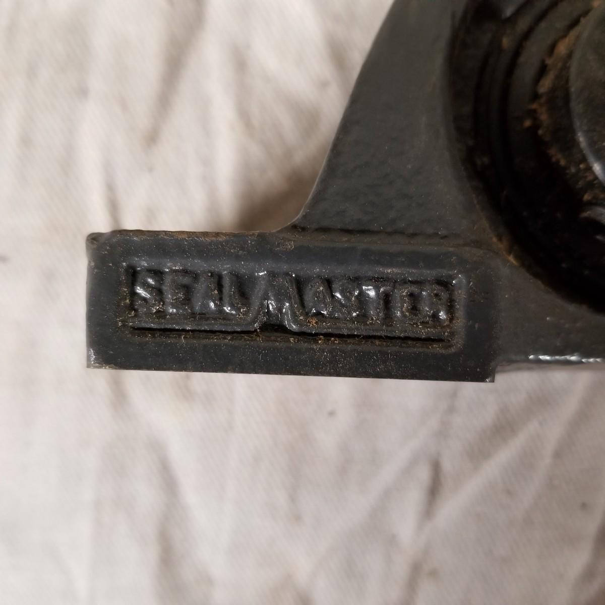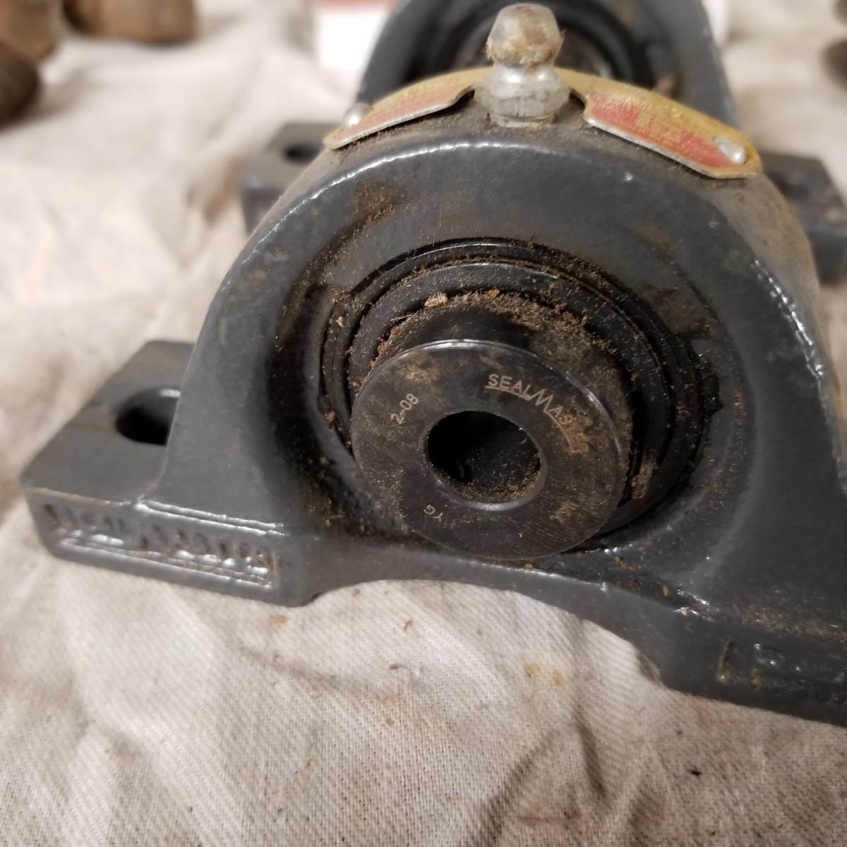 Assortment of pulleys, from 2" d up to 5" d.  Some singles, one double, one triple.  Most all are 1/2" shaft except for Chicago item which is 3/4".  Also old door hardware,  four knobs and two faceplates.  Four wood wheel casters, 1" d, and two Sealmaster ball bearing pillow blocks, 1/2" bore with grease fittings.  One vintage 9" tin candle mold to make four at a time.  Shipping  available.
