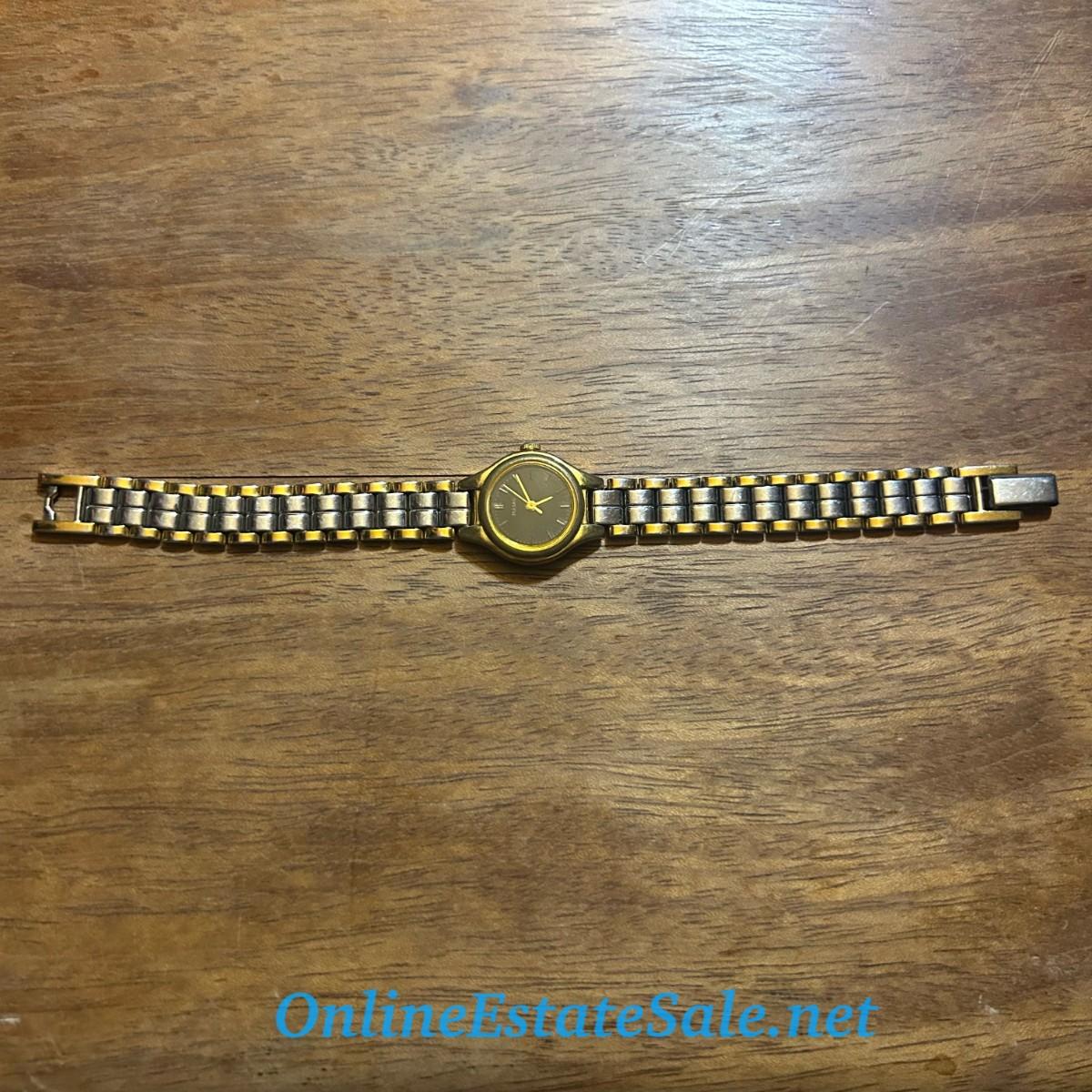 Gold and Silver Colored Metal Pulsar Brand Watch with Black Face